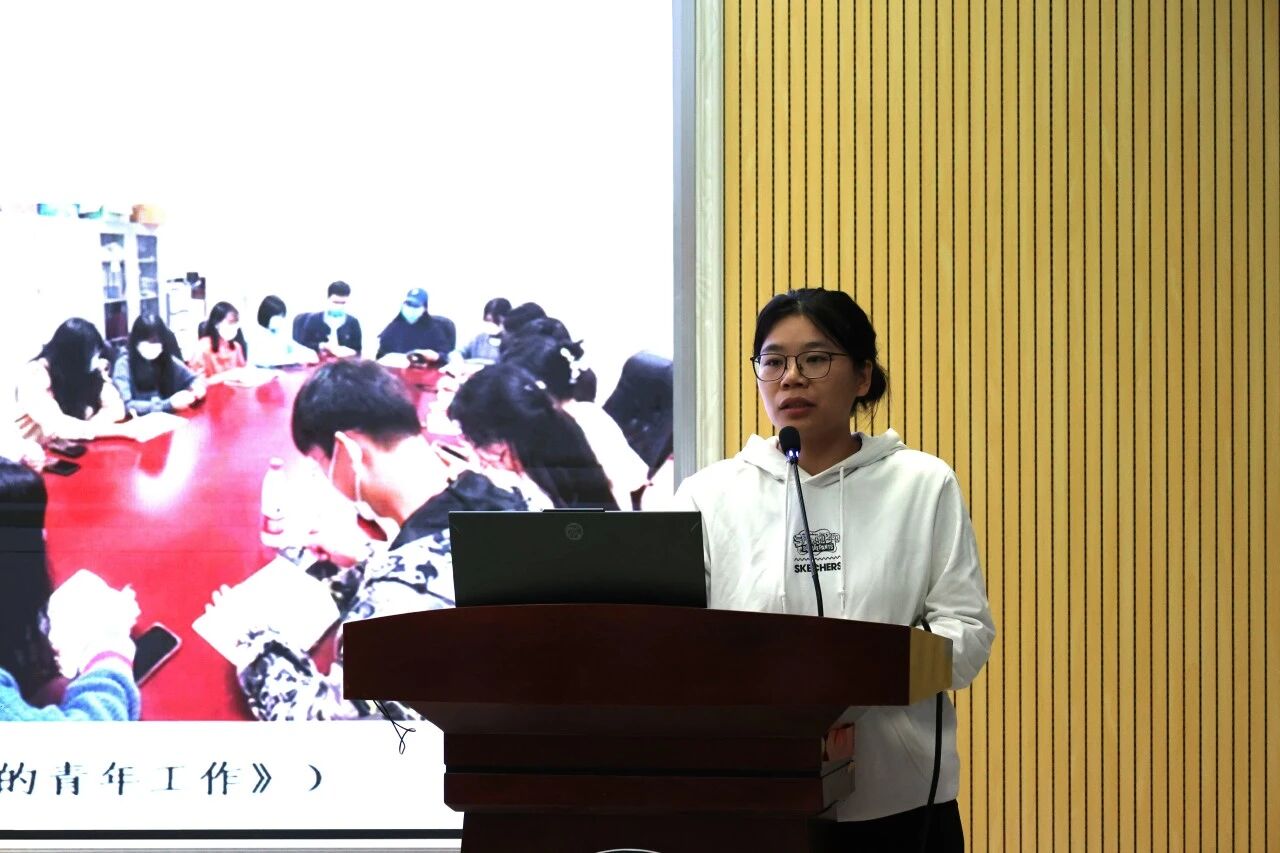 在述职环节,10位二级院(系)团组织书记代表依次上台,围绕“三全育人”、“五育并举”理念,从院(系)重点工作开展情况和成效、工作业绩、工作不足与整改措施等方面,展开了全面而深入的汇报。