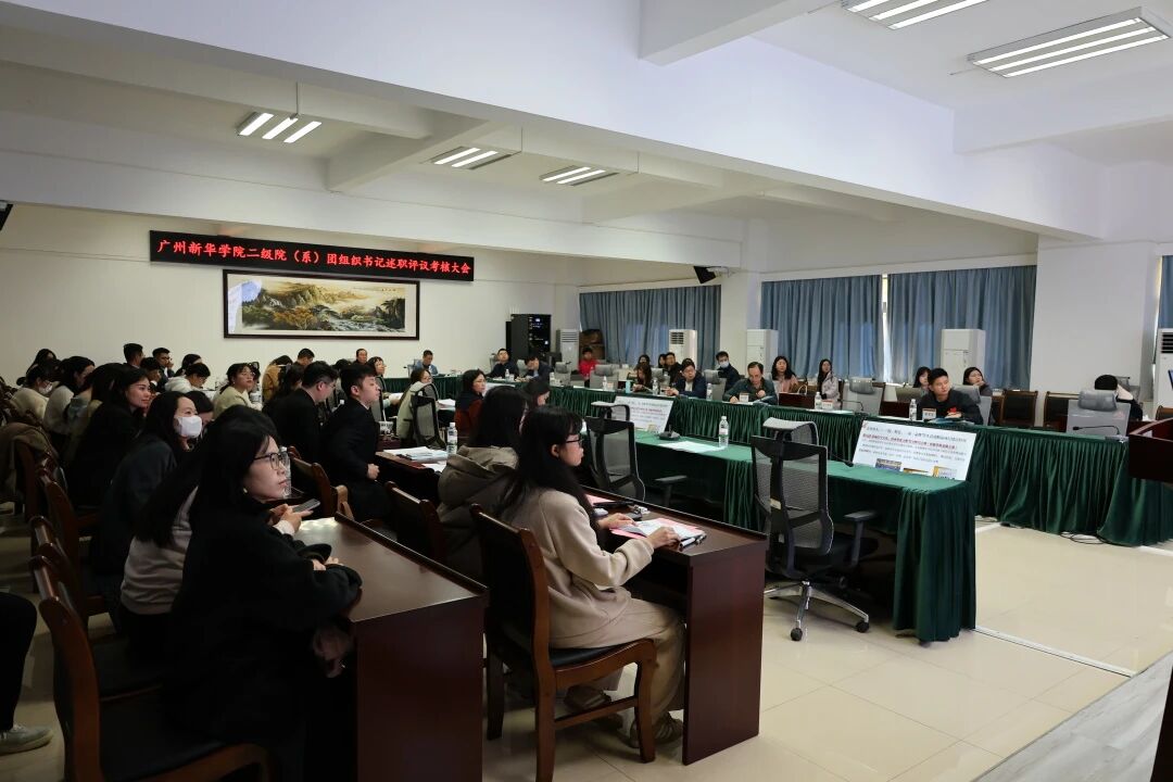 为深入学习领会党的二十大和党的二十届三中全会精神,贯彻落实习近平总书记关于青年工作的重要思想,进一步加强学校共青团基层组织建设,充分发挥共青团在学校教育教学中的重要作用,2025年1月7日,共青团广州新华学院委员会(以下简称校团委)在东莞校区格物②A208隆重召开了二级院(系)团组织书记述职评议考核大会。
