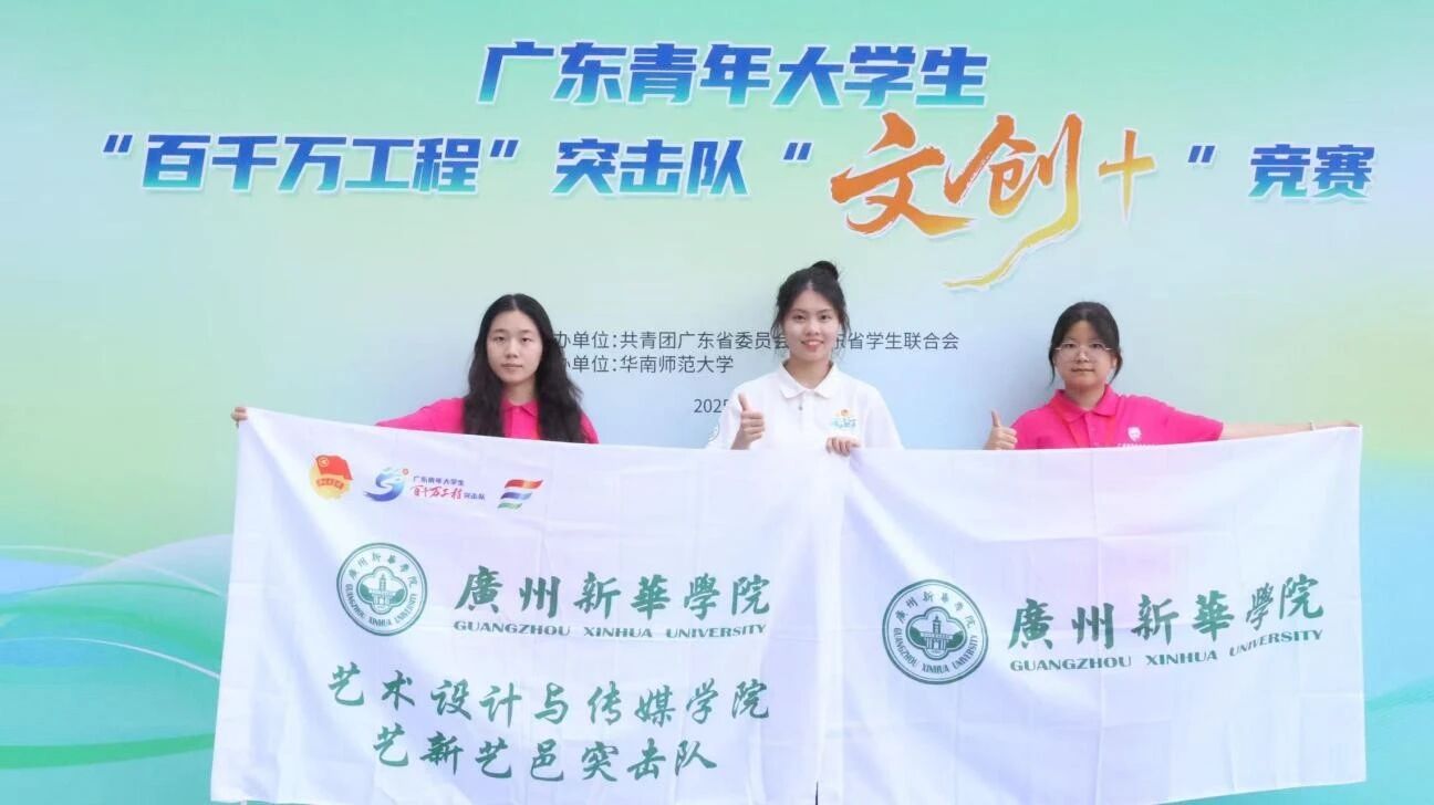 我校学子积极响应广东省“百千万工程”高质量发展的号召,投身于社会实践的广阔天地中,用实际行动诠释了新时代青年的责任与担当。在广东青年大学生 2025年“百千万工程” 突击队“文创+”竞赛中,艺术设计与传媒学院艺新艺邑突击队脱颖而出,荣获三等奖,为岭南文化传承注入青春活力,展现了我校青年学子的风采。