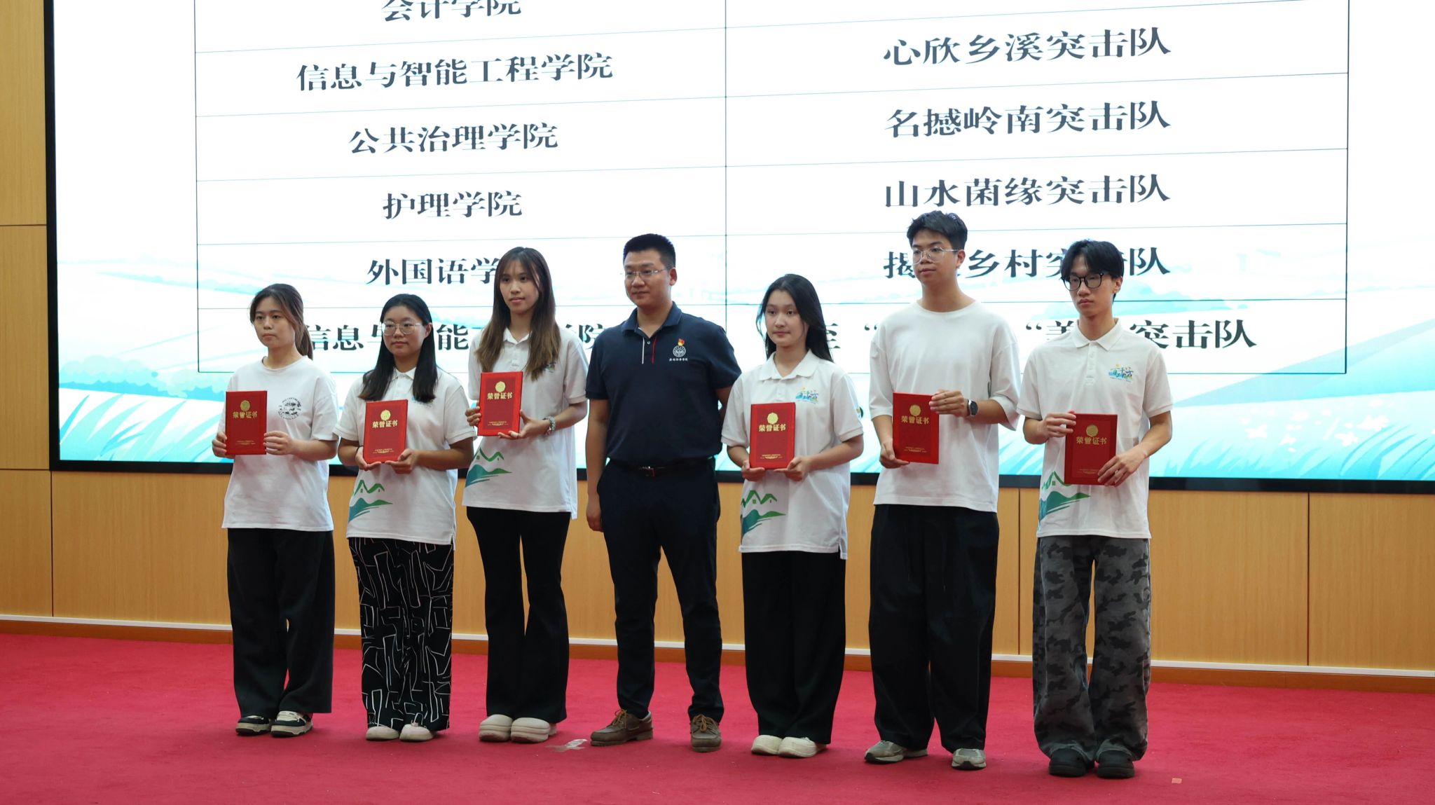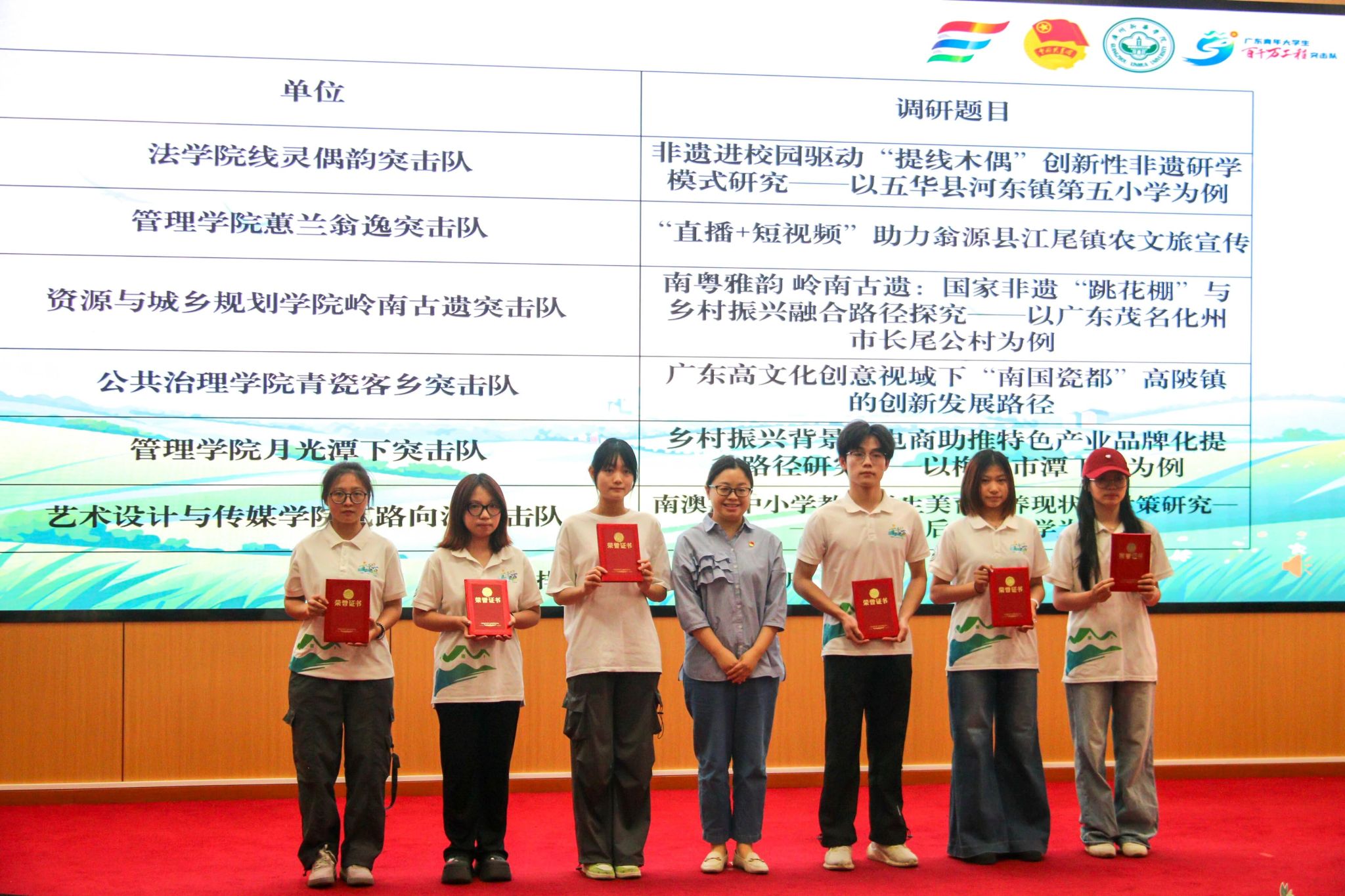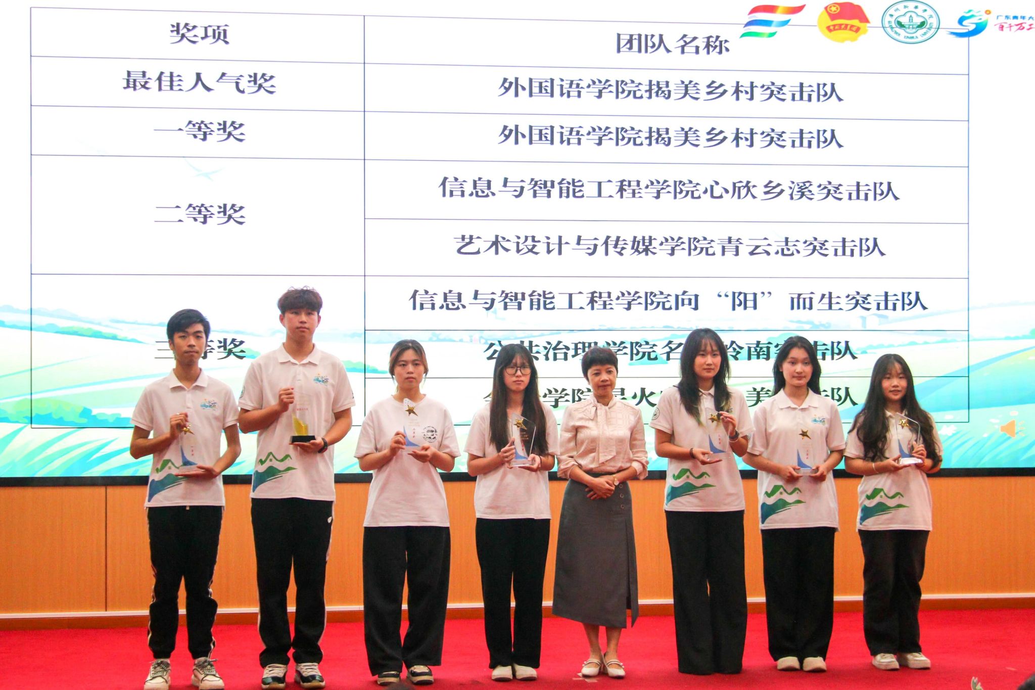 图15:学校纪委书记、党委教师工作部部长林源老师(右六)为2024年“多彩乡村 共谱新篇”系列实践活动奖项获奖代表颁奖