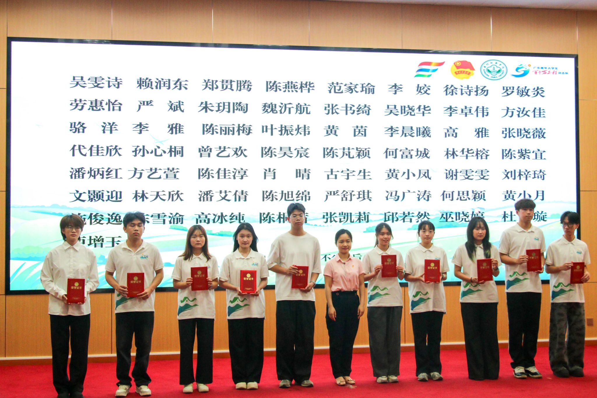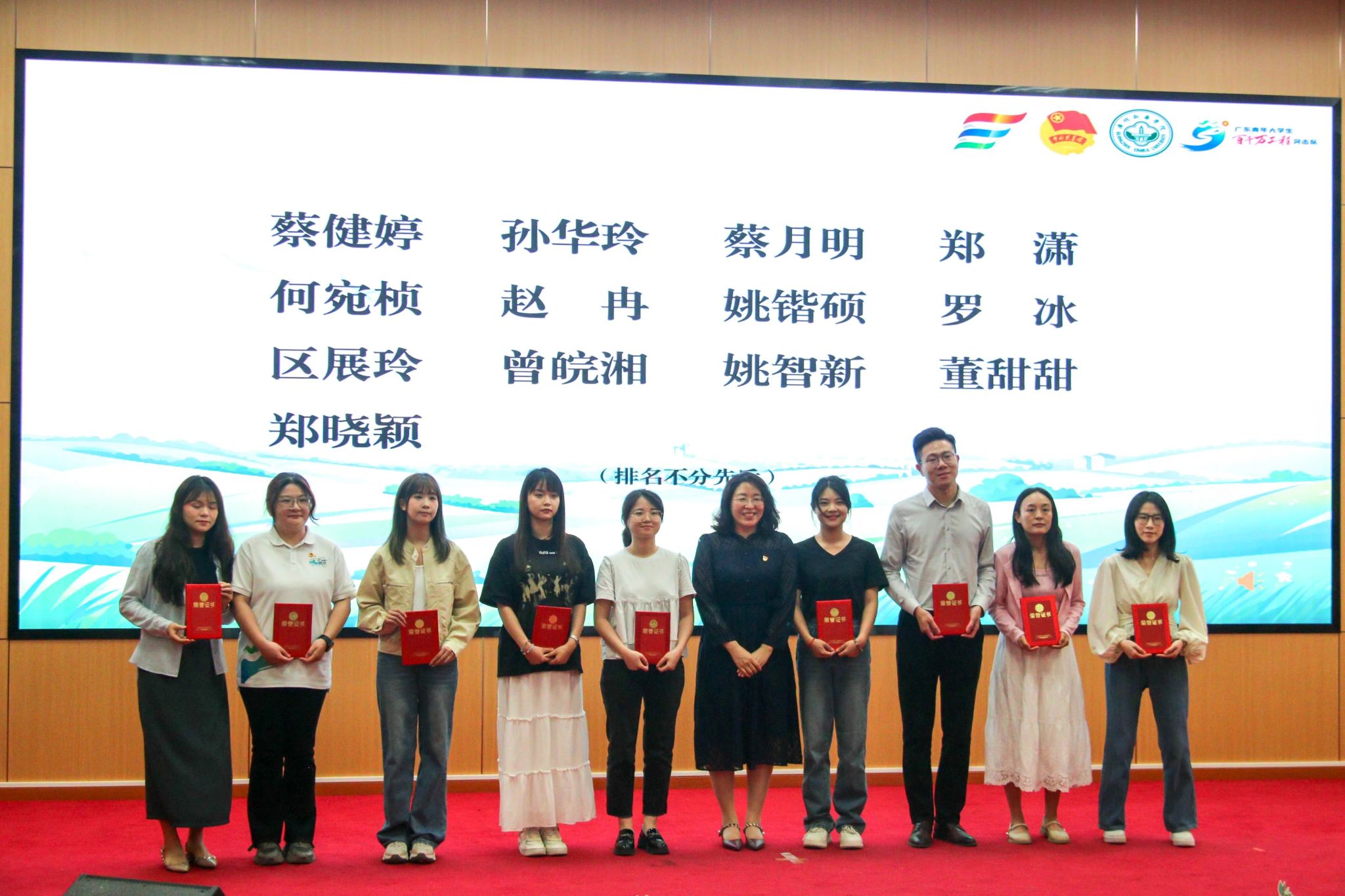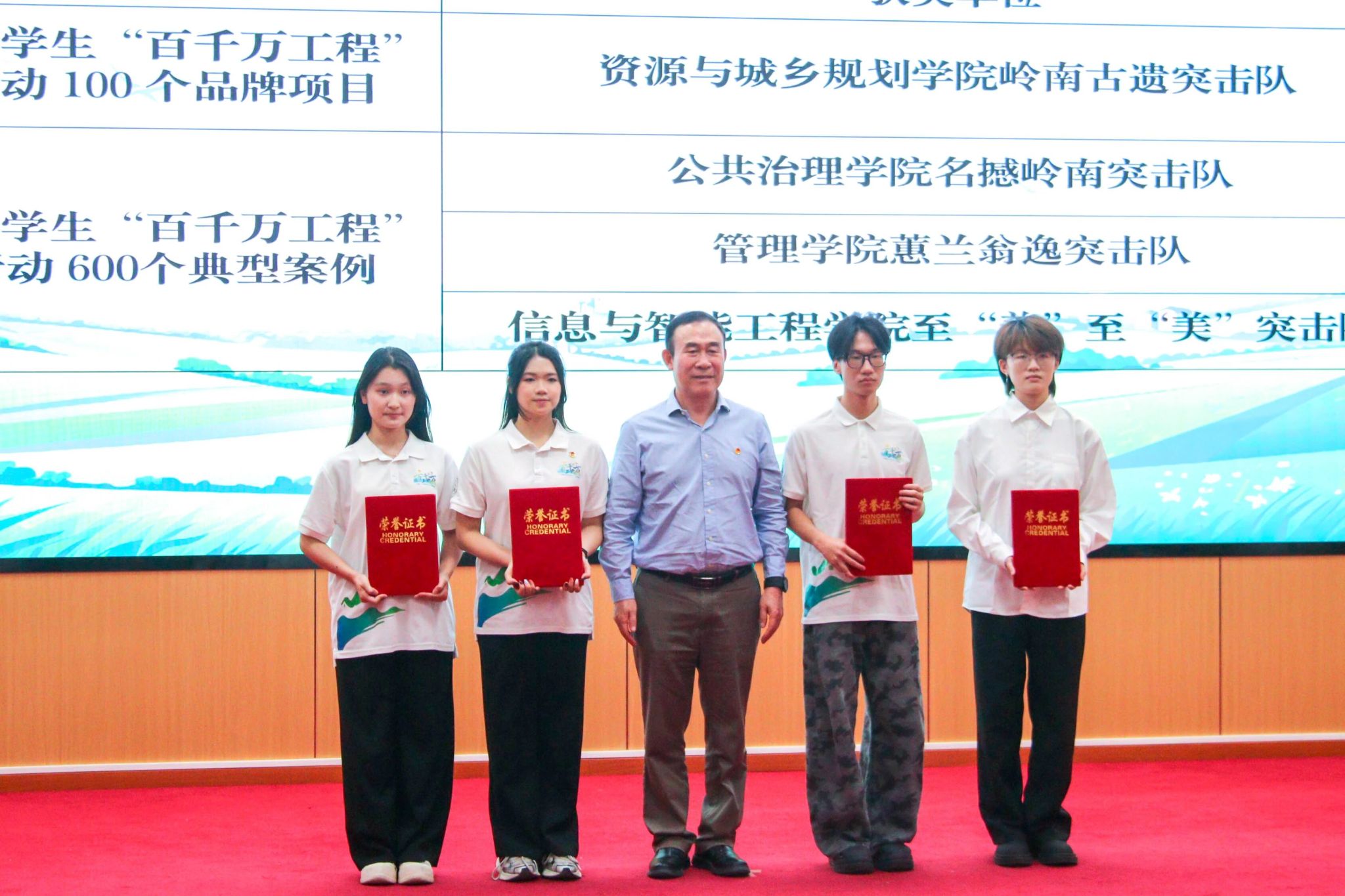 图15:学校纪委书记、党委教师工作部部长林源老师(右六)为2024年“多彩乡村 共谱新篇”系列实践活动奖项获奖代表颁奖