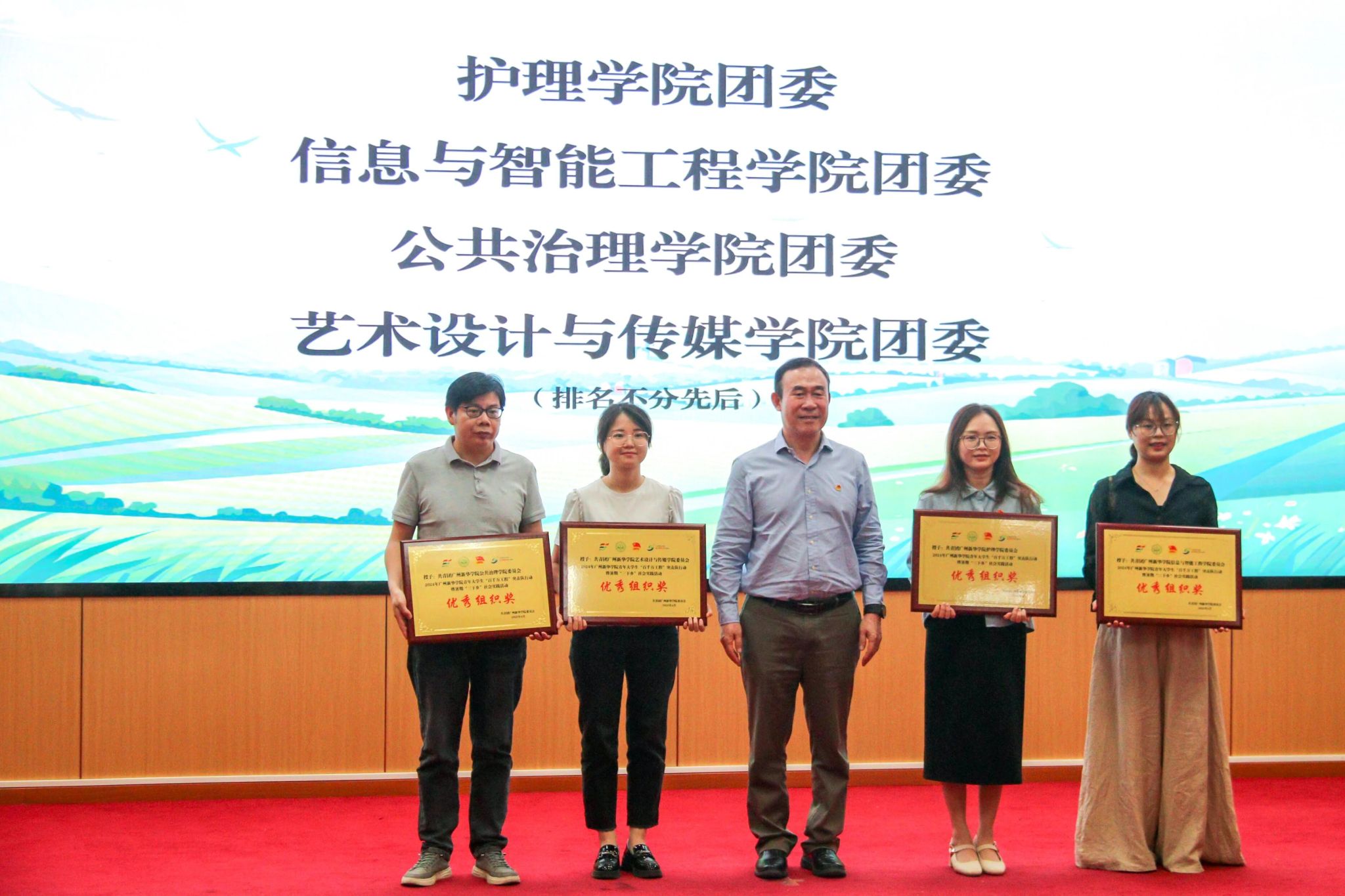 图17:学校副校长李毅(右三)为校级优秀组织奖获奖院系代表颁奖