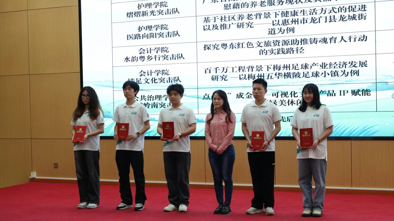 为了让大家更加深入地了解“三下乡”活动,校团委邀请了在2024年暑期“三下乡”社会实践活动中表现突出的优秀团队代表进行展示。护理学院医路向阳突击队、管理学院蕙兰翁逸突击队、外国语学院揭美乡村突击队等团队依次上台,通过PPT讲解、视频等形式,分享了他们在助老服务、农文旅宣传、农产品销售等方面的实践成果与感悟,多样化的实践方式,为同学们提供了宝贵经验借鉴。这些分享不仅展现了同学们在实践中取得的成果,更传递了他们在基层服务中积累的宝贵经验,激励更多同学投身“三下乡”,让青春在服务乡村中绽放光彩。