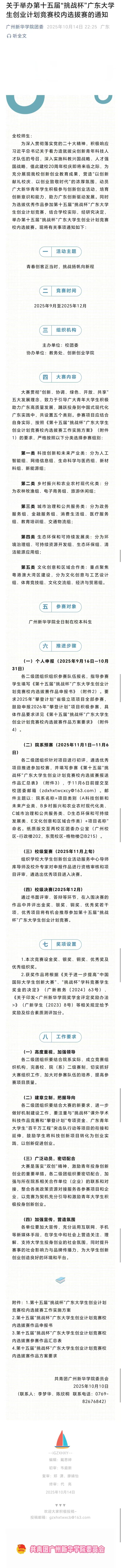 预通知 | 关于征集第十五届“挑战杯”广东大学生创业计划竞赛校内选拔赛项目