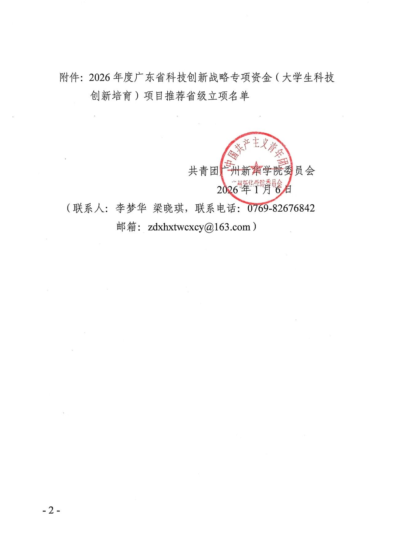 附件:2026年度广东省科技创新战略专项资金(大学生科技创新培育)项目推荐省级立项名单