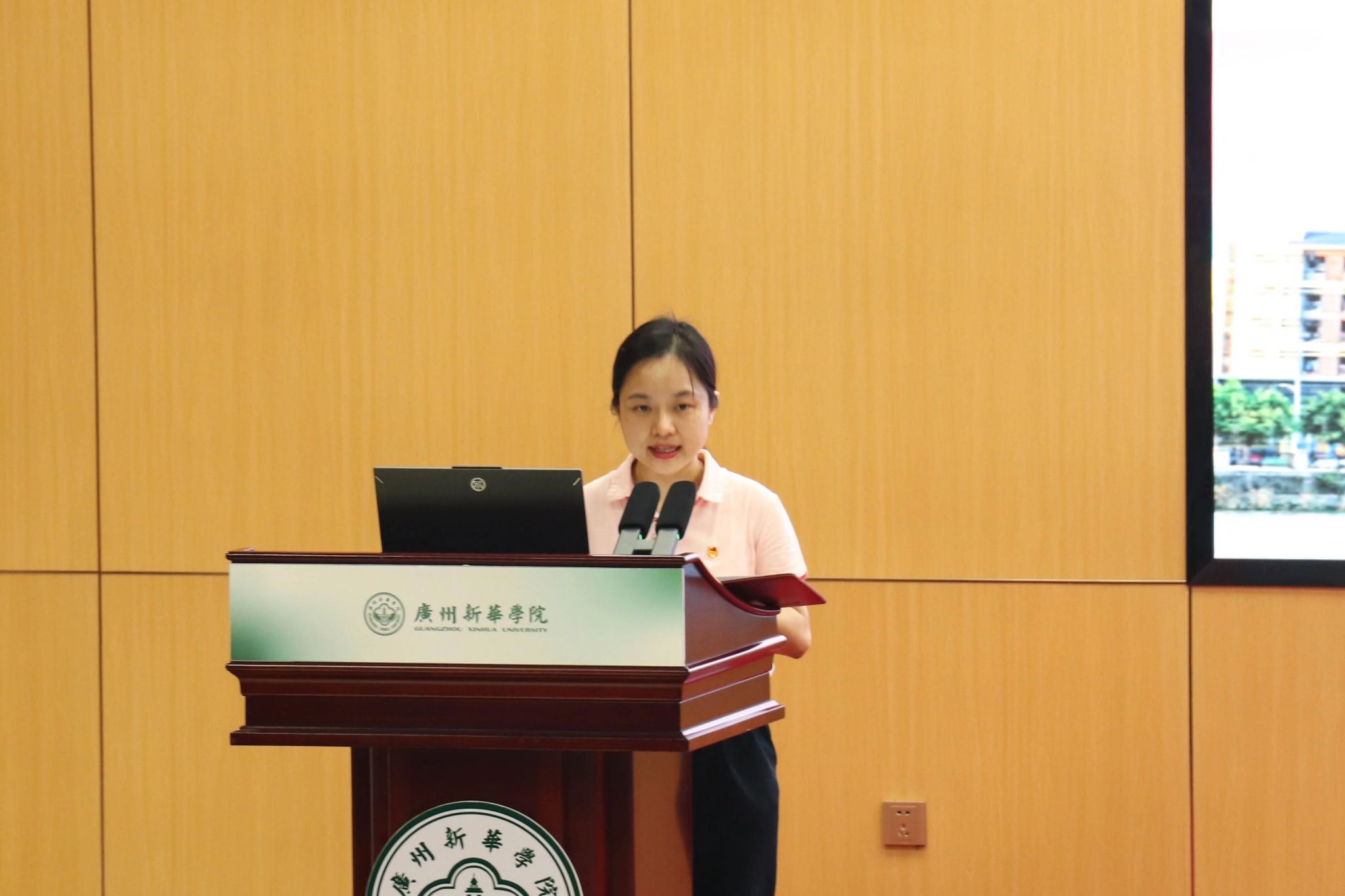 图六:校团委副书记李梦华为广州新华学院2024-2025年度“优秀共青团干部“颁奖