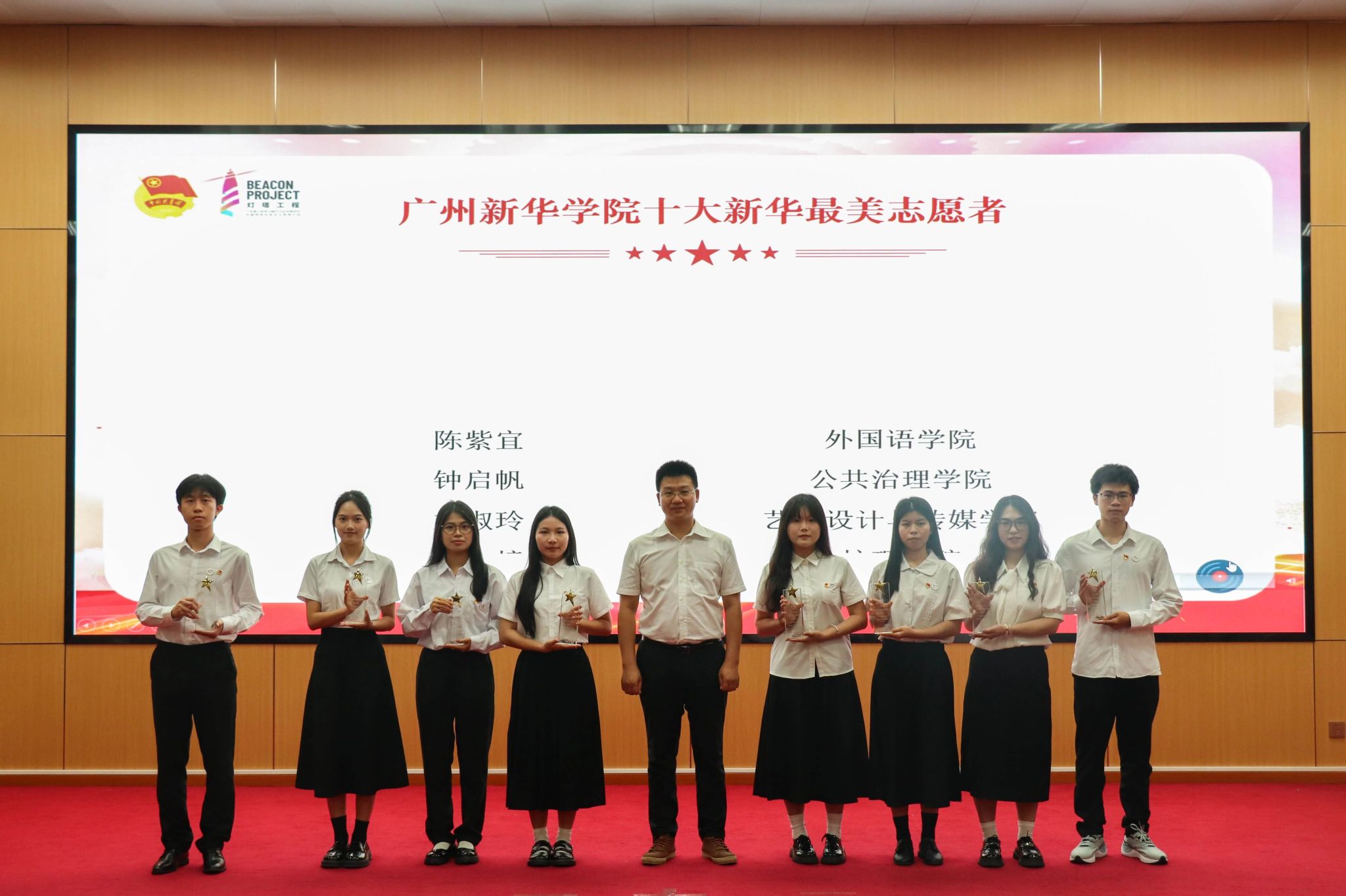 图九:党委宣传部副部长陶强为广州新华学院2024-2025年度“十大新华最美志愿者”颁奖
