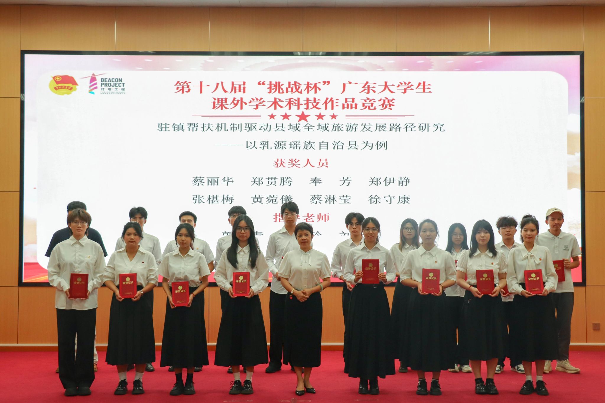 图十三:校长助理、教务处处长蔡映辉为“第十八届‘挑战杯’广东大学生课外学术科技作品竞赛”颁奖
