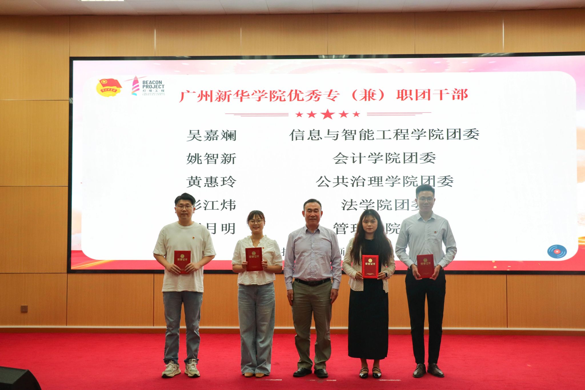 图五:学生处学生教育管理科科长陈伟钊为广州新华学院2024-2025年度"优秀共青团员"颁奖