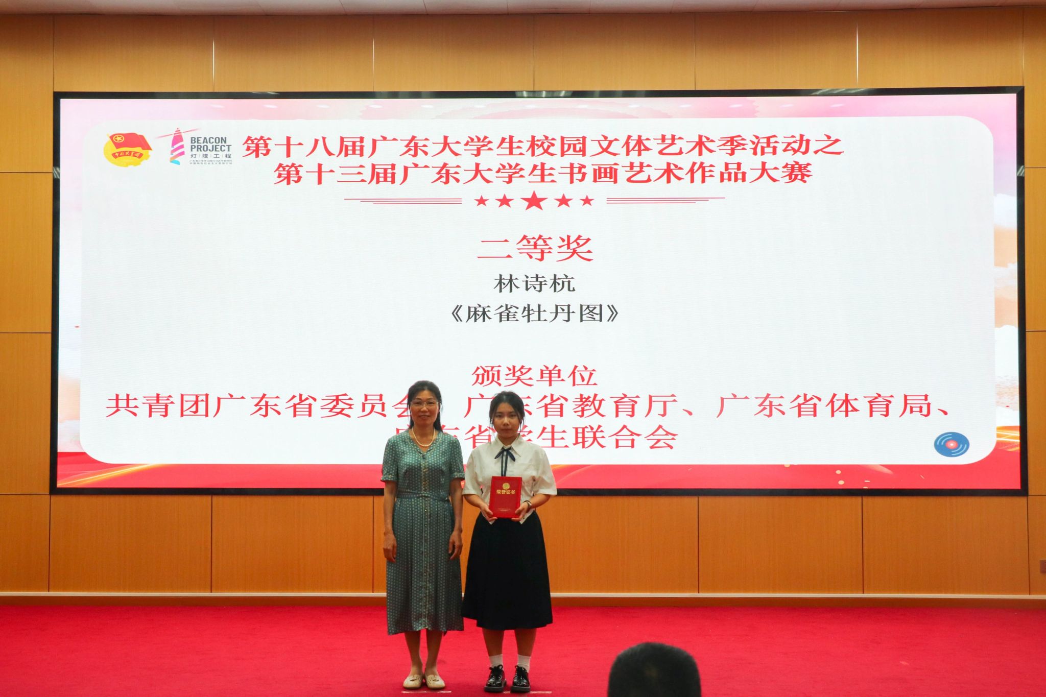 图十二:财务总监吴赛金为“第十八届广东大学生校园文体艺术季活动之第十三届广东大学生书画艺术作品大赛”颁奖