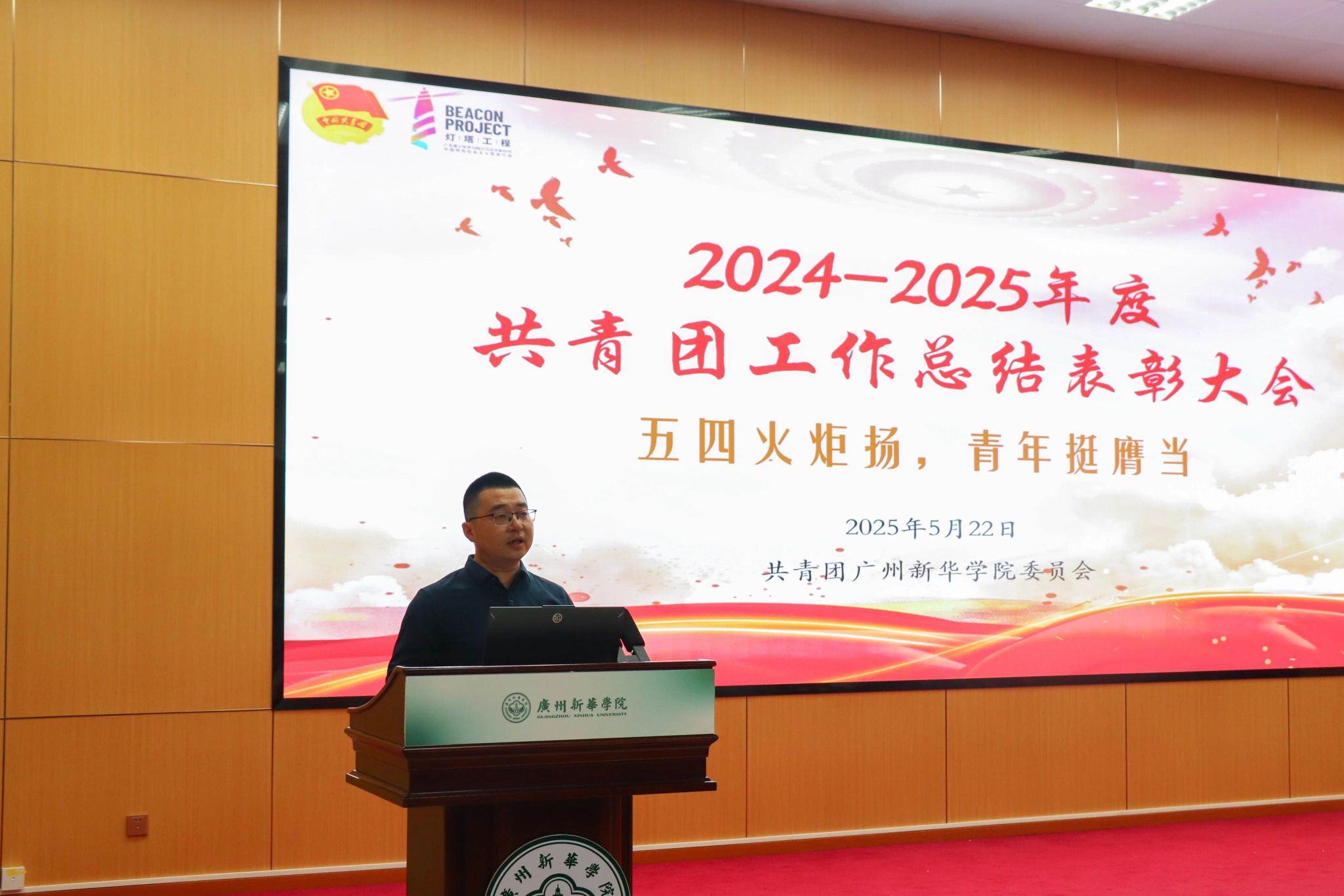 学习五四楷模,以星辰之辉指引奋进新征程。5月22日,广州新华学院2024-2025年度共青团工作总结表彰大会在东莞校区举行。