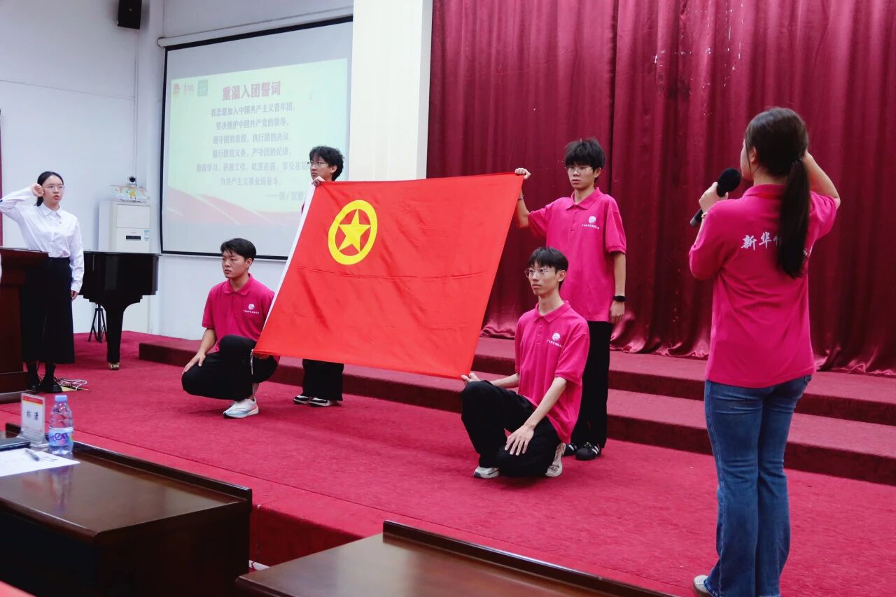 紧接着,在校团委组织部副部长罗尹希的带领下,全体学员慷慨激昂、掷地有声地重温了入团誓词。注视着鲜艳明亮的中国共产主义青年团团旗,演员们脑海中不断回响初入共青团时的崇高理想与坚定誓言,理想信念进一步升华。