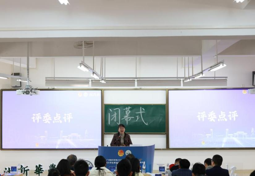 在闭幕式上,华南师范大学颜海娜教授代表评委组对各参赛项目进行深入点评。首先,她对各参赛团队成果予以充分肯定,赞许了各团队将社会热点、民生问题和国家治理热点与难点与社会实践项目紧密挂钩的做法。同时她也指出团队们在赛道呈现、选题格局、研究方法等方面不足,提出了各个方面的注意事项,为参赛团队未来优化与发展指明了前进方向。