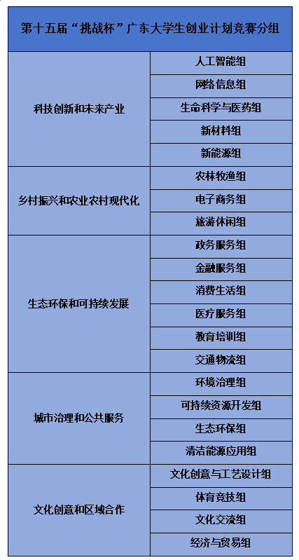图1:第十五届“挑战杯”广东大学生创业计划竞赛分组
