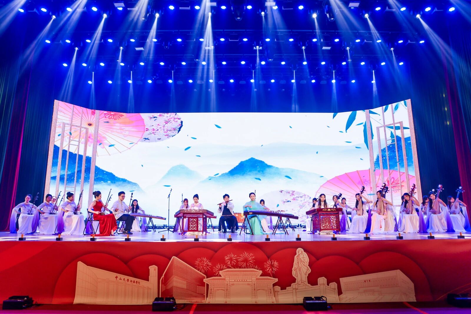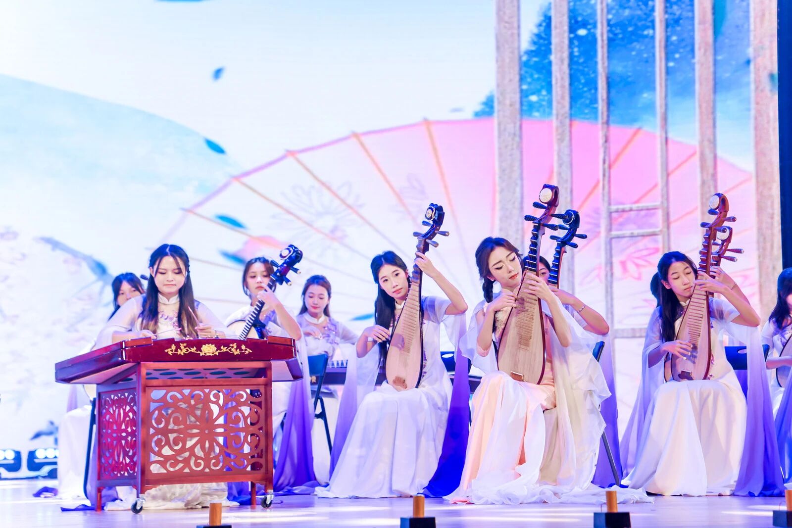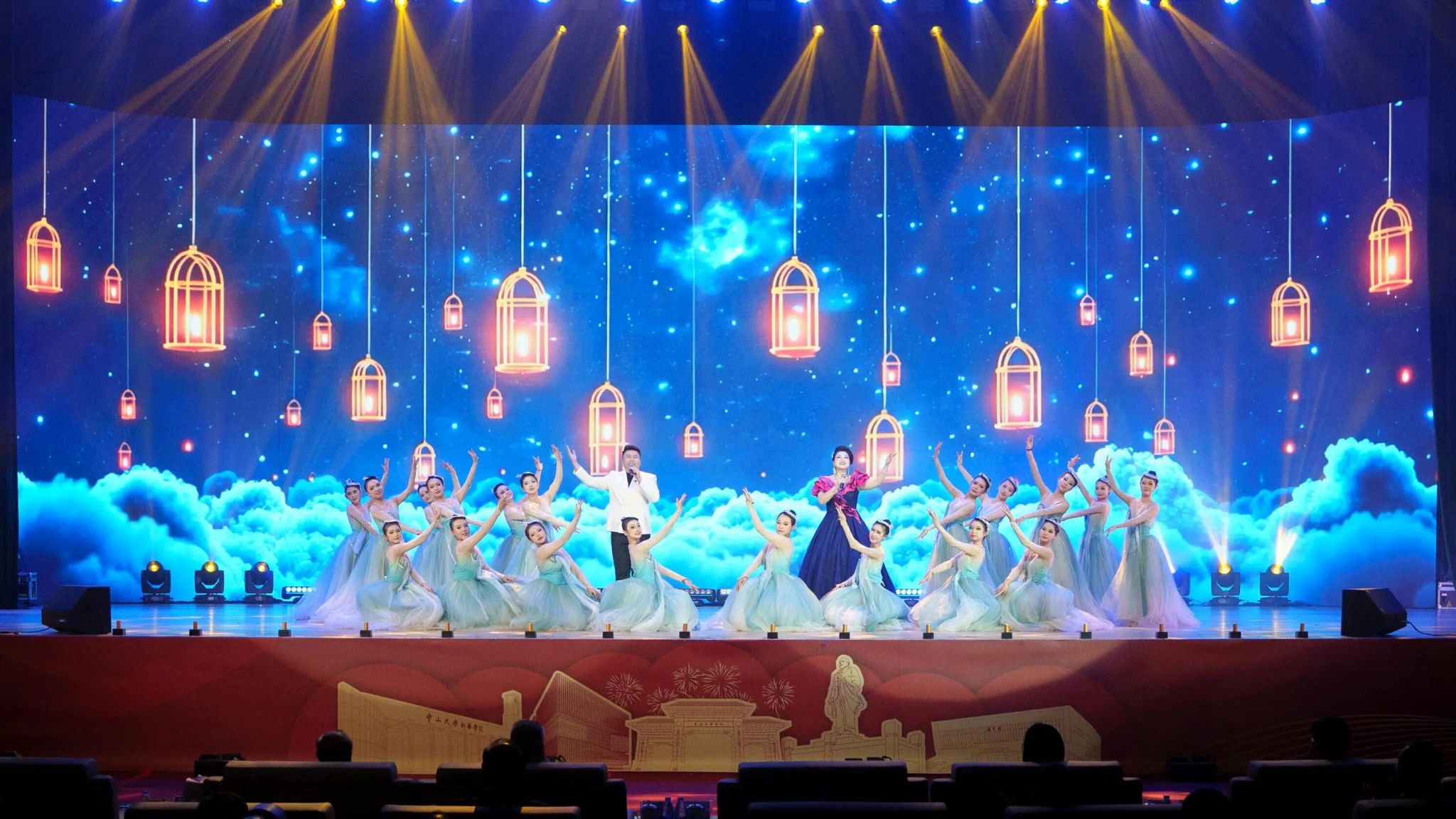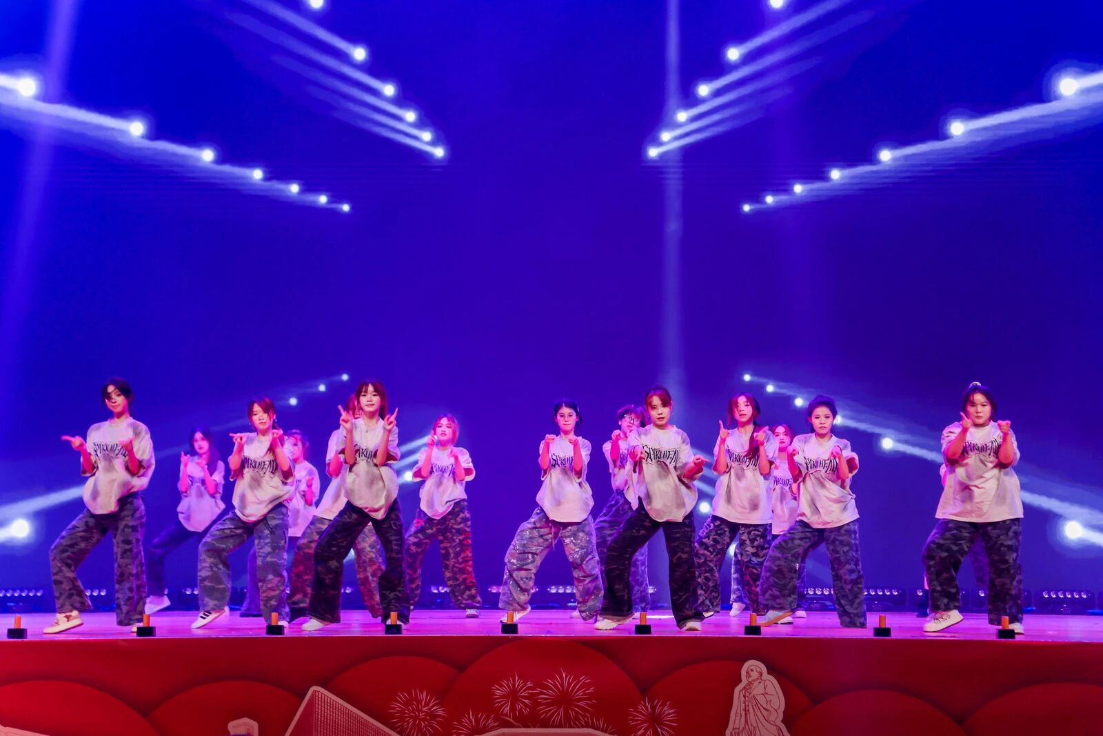 此篇章以“师生共绘青春画卷”为主线。空壳戏剧工作室、中国语言文学系与校艺术团强强联合,精心打造了情景剧《我们二十,正青春》。该剧运用多时空叙事手法,巧妙地将学子们的成长轨迹串联起来,让观众在沉浸式体验中,感受到青春的温暖与力量。音乐系民乐团与校艺术团器乐队携手登台,联袂演绎广东音乐经典之作《彩云追月》与《花好月圆》。悠扬的丝竹之音宛如潺潺流水,在舞台上缓缓流淌,各种乐器相互交织、相得益彰,共同绘就了一幅月圆佳话的绝美画卷。音乐系教师与历届校园歌手大赛获奖得主同台献艺,他们用歌声传递着青春的激情与梦想。《最初的梦想》《改变自己》《你曾是少年》,每一首歌都像是一把钥匙,打开了观众心中尘封已久的青春记忆之门。音乐剧选段《我属于我自己》以多声部重唱的独特形式惊艳亮相。不同的声部相互交织、碰撞,如同夜空中绽放的绚烂烟花,展现出无与伦比的艺术魅力。醒狮队带来的《狮跃新华,未来似锦》,传统南狮与现代光影完美交融,醒狮的每一次腾跃,都象征着学校在新时代的征程中昂首阔步、奋勇向前。