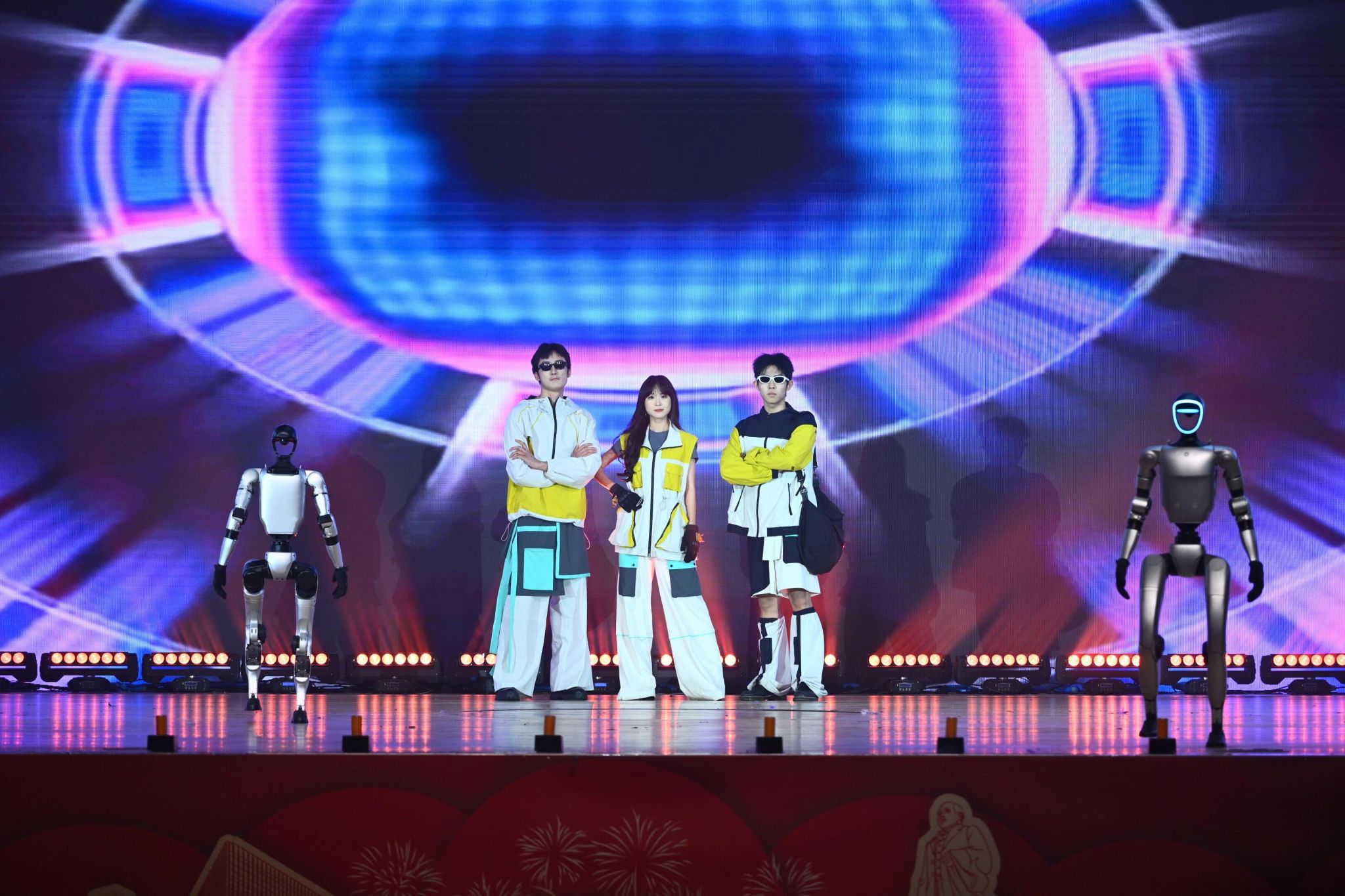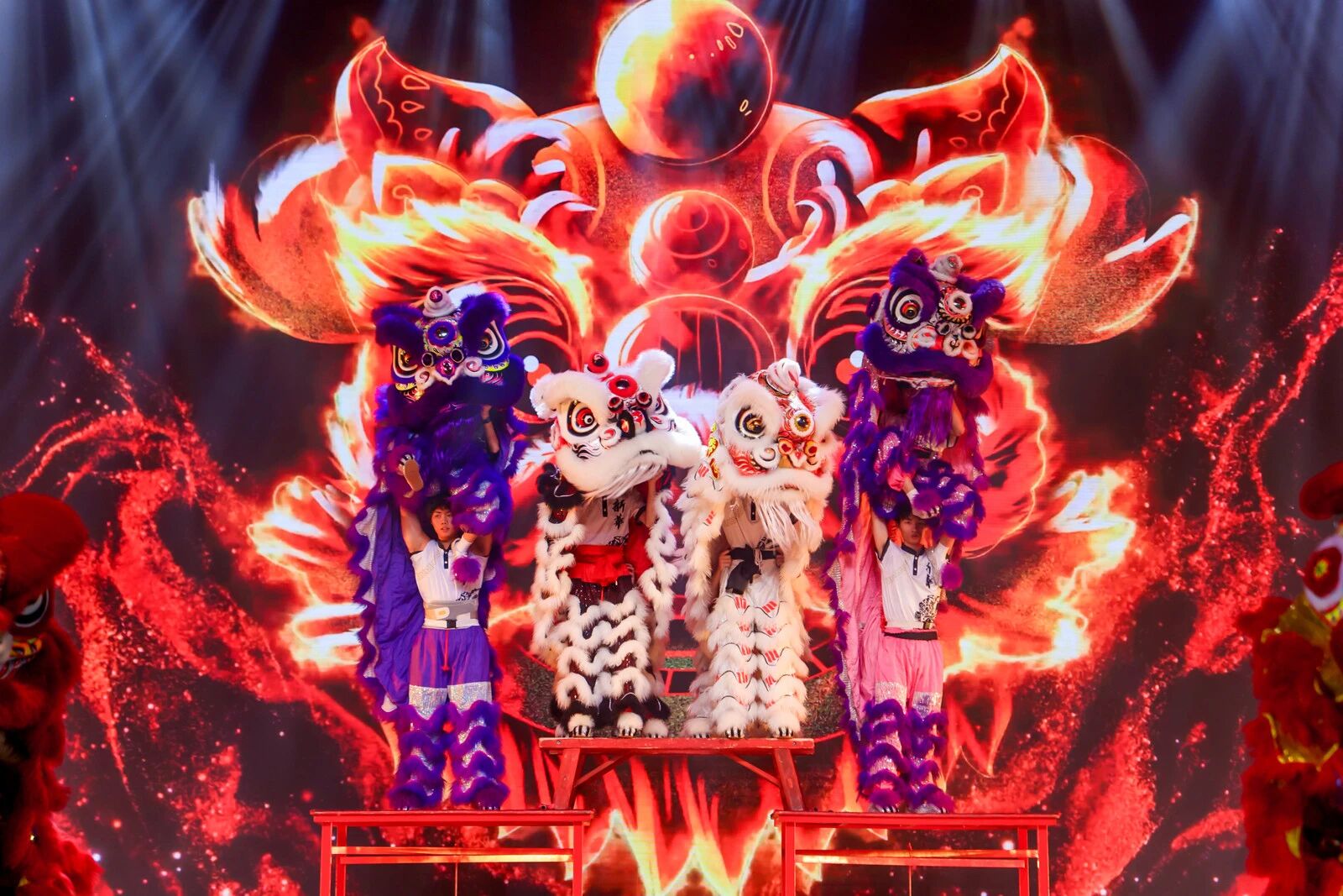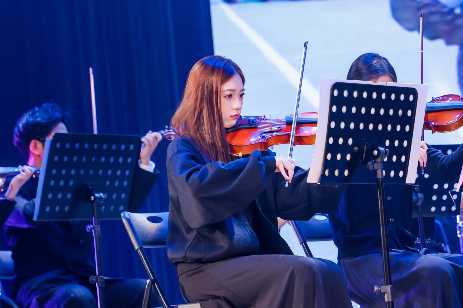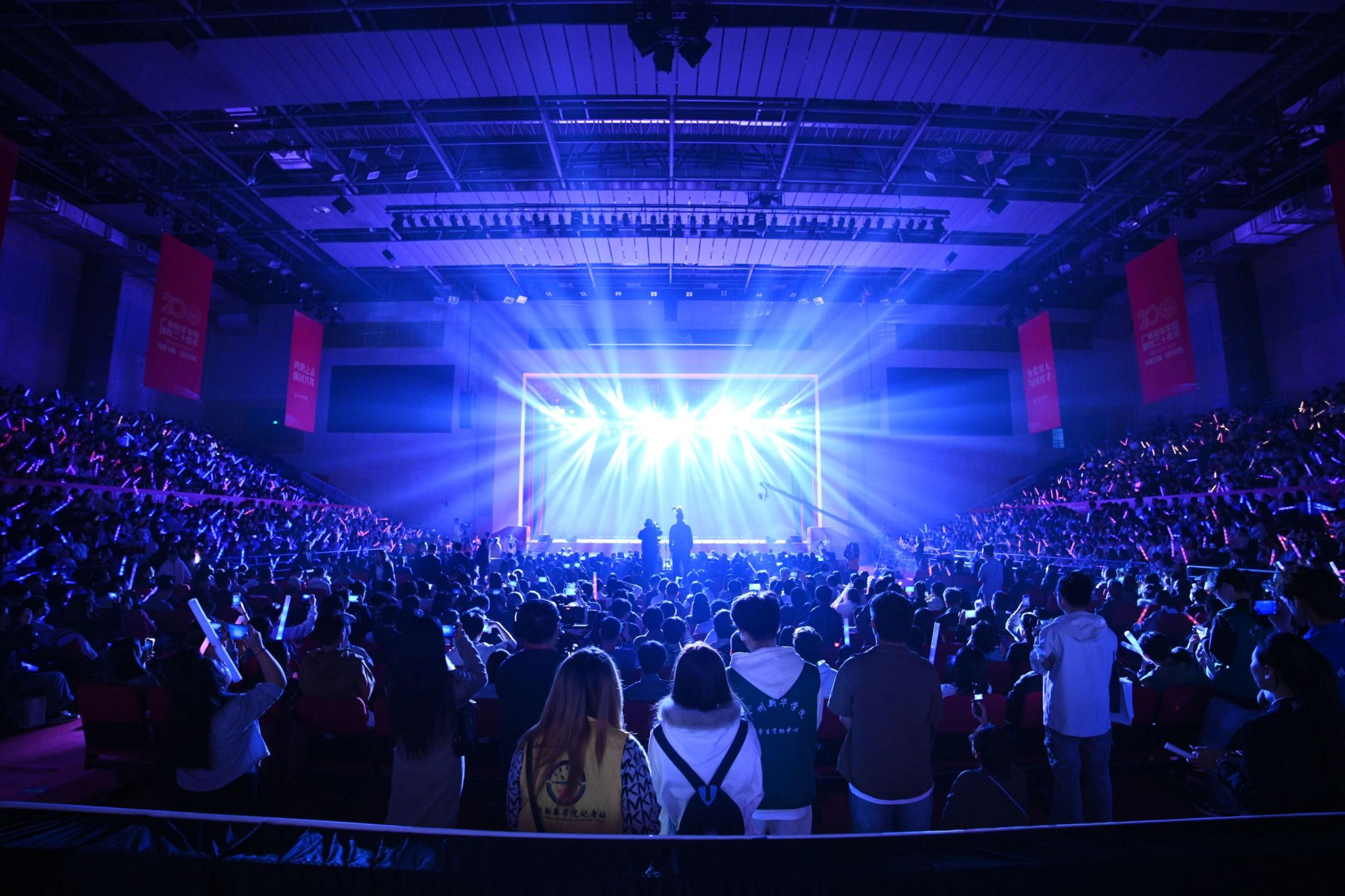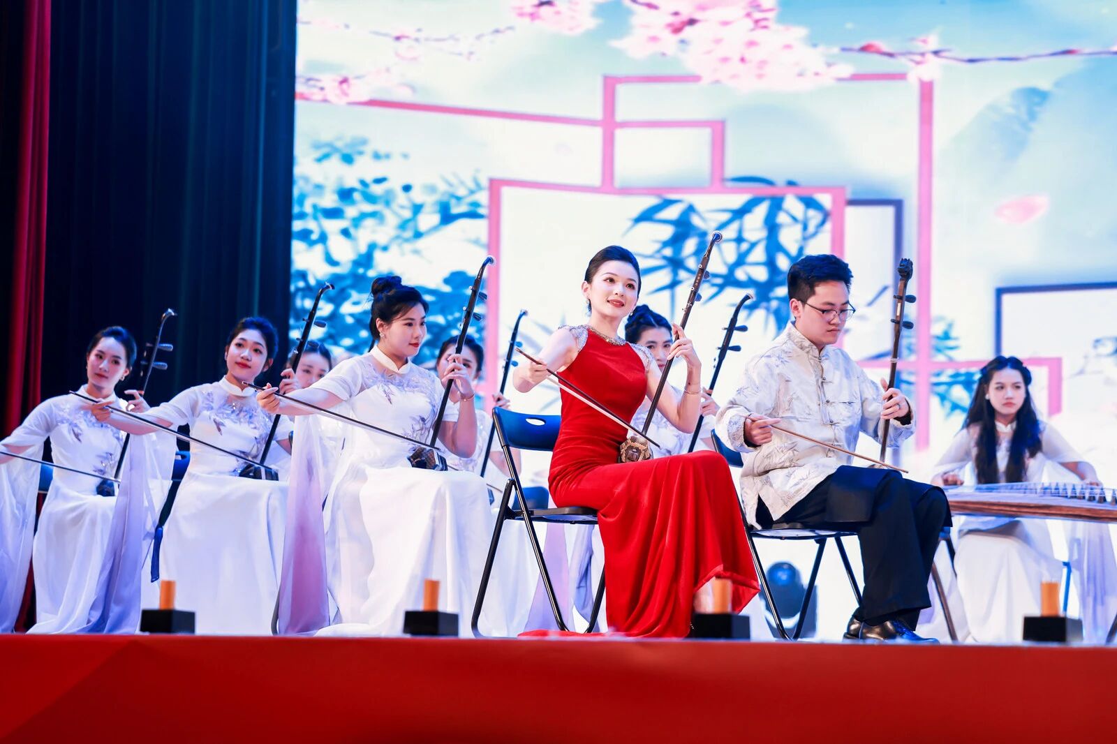 此篇章以“师生共绘青春画卷”为主线。空壳戏剧工作室、中国语言文学系与校艺术团强强联合,精心打造了情景剧《我们二十,正青春》。该剧运用多时空叙事手法,巧妙地将学子们的成长轨迹串联起来,让观众在沉浸式体验中,感受到青春的温暖与力量。音乐系民乐团与校艺术团器乐队携手登台,联袂演绎广东音乐经典之作《彩云追月》与《花好月圆》。悠扬的丝竹之音宛如潺潺流水,在舞台上缓缓流淌,各种乐器相互交织、相得益彰,共同绘就了一幅月圆佳话的绝美画卷。音乐系教师与历届校园歌手大赛获奖得主同台献艺,他们用歌声传递着青春的激情与梦想。《最初的梦想》《改变自己》《你曾是少年》,每一首歌都像是一把钥匙,打开了观众心中尘封已久的青春记忆之门。音乐剧选段《我属于我自己》以多声部重唱的独特形式惊艳亮相。不同的声部相互交织、碰撞,如同夜空中绽放的绚烂烟花,展现出无与伦比的艺术魅力。醒狮队带来的《狮跃新华,未来似锦》,传统南狮与现代光影完美交融,醒狮的每一次腾跃,都象征着学校在新时代的征程中昂首阔步、奋勇向前。