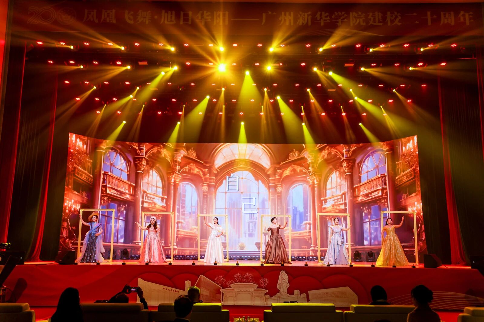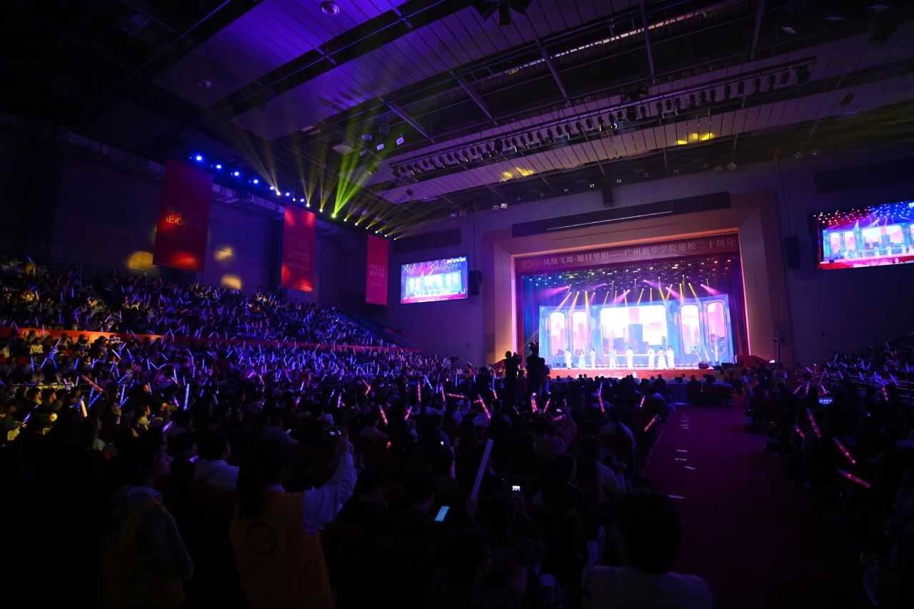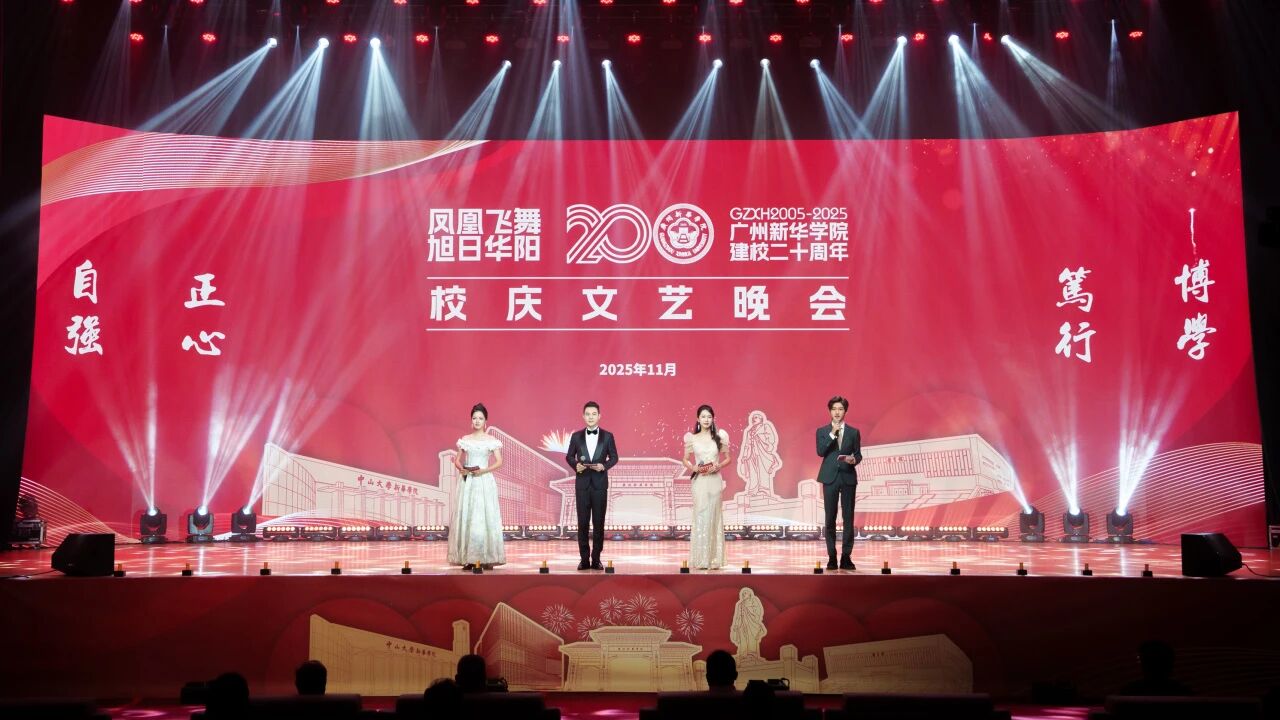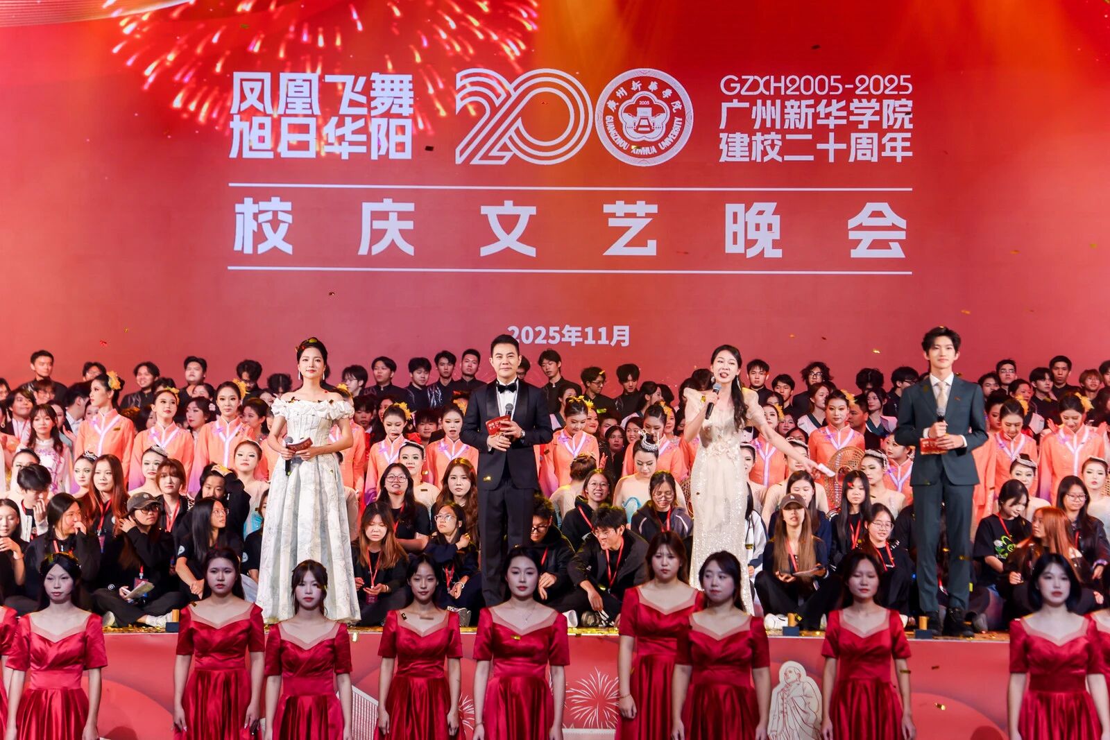 11月18日晚,广州新华学院(以下简称“学校”)华灯璀璨、气氛热烈,“凤凰飞舞·旭日华阳”建校20周年校庆文艺晚会在此盛大上演。晚会特邀各级领导嘉宾莅临指导,全体校领导、教学督导专家、各职能部门及教学单位党政负责人、首席教授、学科带头人等在校内代表共同出席,校友代表与学生代表齐聚一堂,以艺术之名共庆廿载荣光。