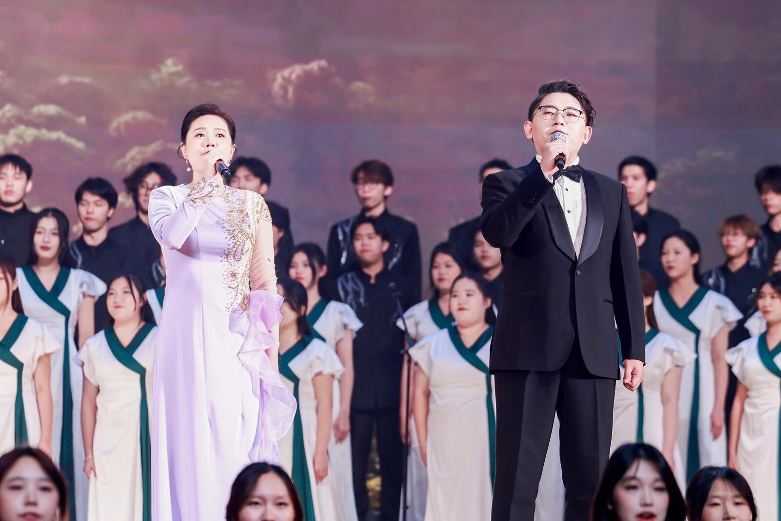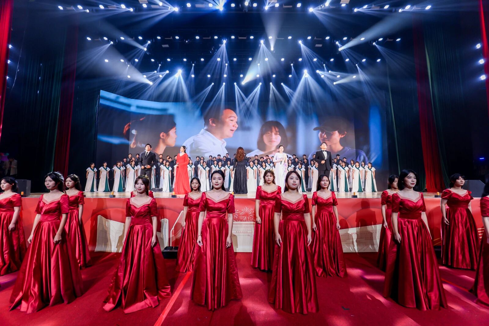 晚会在合唱《新的天地》《启航》中接近尾声,全场师生共同唱响《歌唱祖国》,歌声将心紧紧相连,温暖弥漫,感动流淌,整场活动在热烈庄重的氛围中圆满落幕。