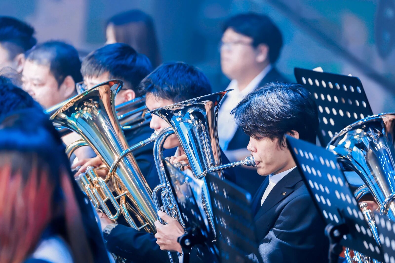 晚会在非遗瑰宝潮州大锣鼓《盛世欢歌》那激昂澎湃、排山倒海般的鼓点中热烈启幕。潮州民间音乐团的艺术家们宛如一群气势磅礴的勇士,以雷霆万钧之势奏响这古老而独特的旋律。仿佛在诉说着学校二十年来砥砺奋进的壮阔征程。音乐系管弦乐团华丽登场,带来《钢铁洪流进行曲》与《东风浩荡进行曲》。特邀嘉宾与师生们携手联袂,共同演绎恢弘壮丽的乐章。那激昂的旋律,让人不禁心潮澎湃,对先辈们的奋斗精神肃然起敬。护理学院精心打造的舞台剧《白衣芳华,薪火相传》,演员们以细腻入微的表演,生动地再现了医者们救死扶伤的仁心仁术。校艺术团民舞《秋日礼赞·凤鸣华章》则如同一幅绚丽多彩的岭南画卷,在舞台上徐徐展开。舞者们以翩跹灵动的舞姿勾勒出岭南地区独特的风韵。她们时而轻盈跳跃,时而优雅旋转,赢得了全场观众如潮般的掌声。