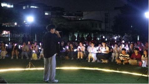 广州新华学院护理学院于足球场举办迎新草地音乐会。志愿者们精心筹备,师生同台献艺:钢琴口琴合奏温柔动人,歌曲舞蹈点燃全场,乐队演出引发合唱。王秀岚院长亲切寄语新生。现场荧光如星海,掌声与歌声交织,以“护暖”为魂,让新生在温馨氛围中开启大学旅程。