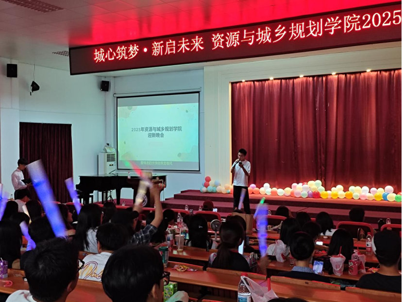资源与城乡规划学院迎新晚会“‘城’心筑梦,新启未来”圆满举行。晚会融合专业特色,节目精彩纷呈,师生同台展现学院风采。现场“听歌识曲”、“击鼓传花”等互动环节,迅速拉近新生距离。荧光闪烁,掌声不断,洋溢着温馨与活力的氛围,凝聚成大家的共同记忆。