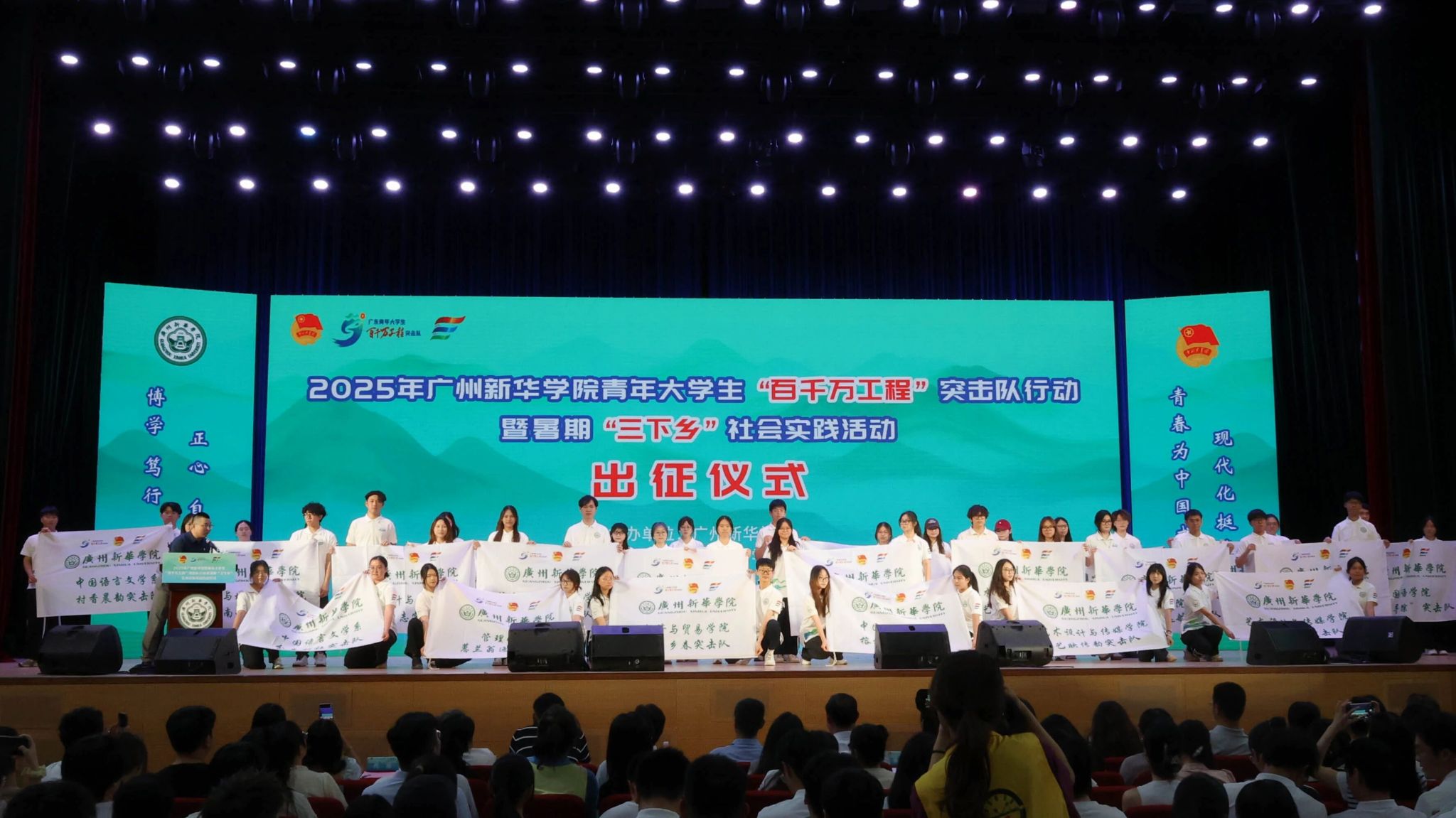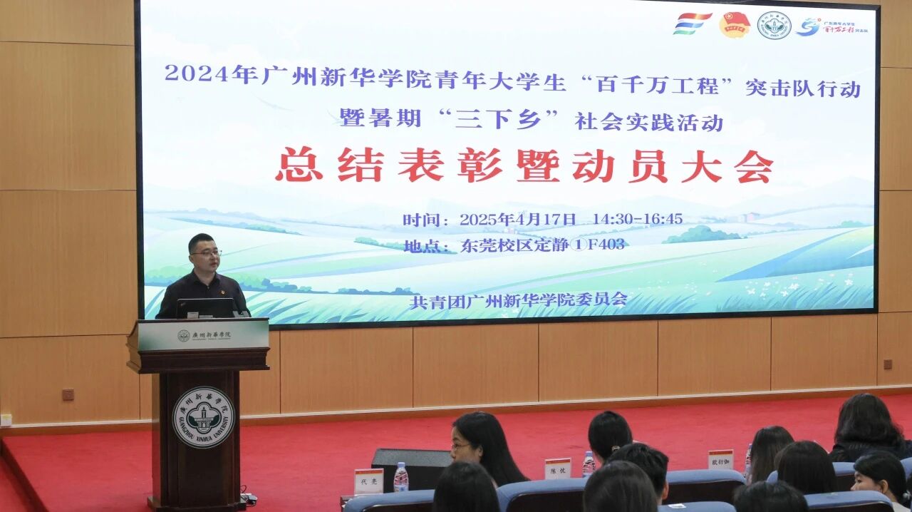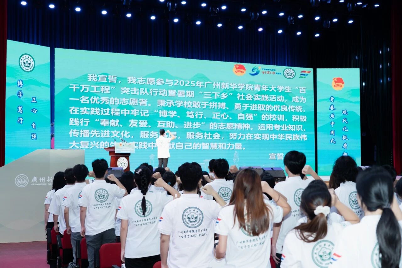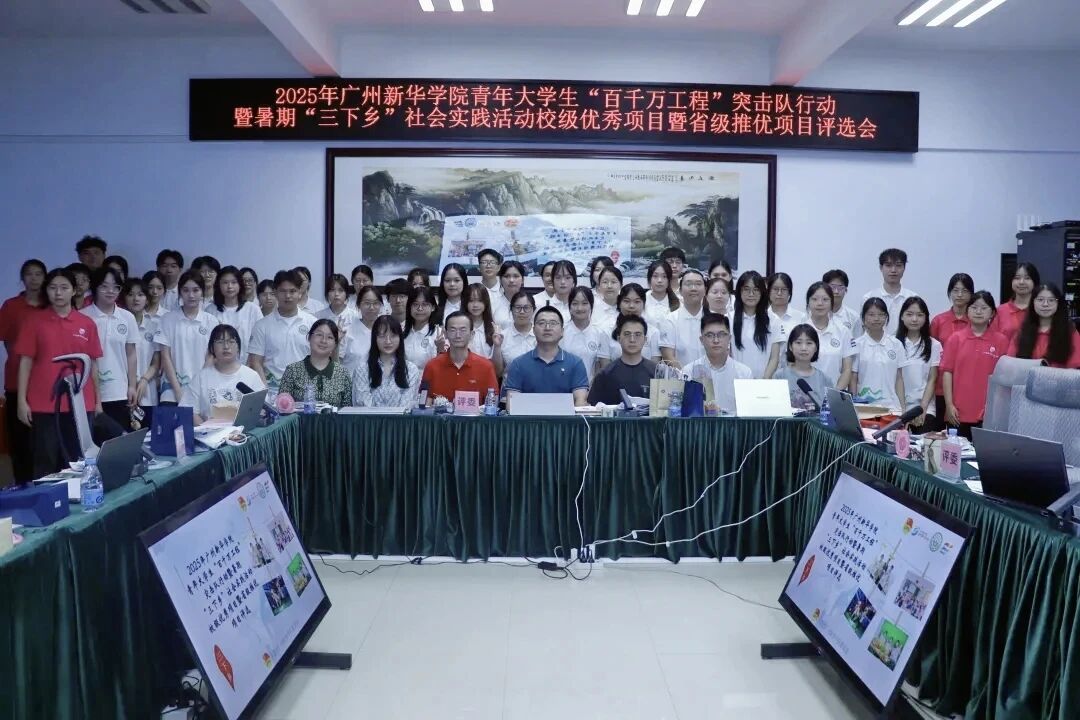 为全面总结2025年“百千万工程”突击队行动暨暑期“三下乡”社会实践活动成果,表彰在活动中表现突出的团队与个人,进一步深化实践育人成效,激励我校青年在社会课堂中成长成才,特举办2025年广州新华学院青年大学生“百千万工程”突击队行动暨暑期“三下乡”社会实践活动总结表彰大会。