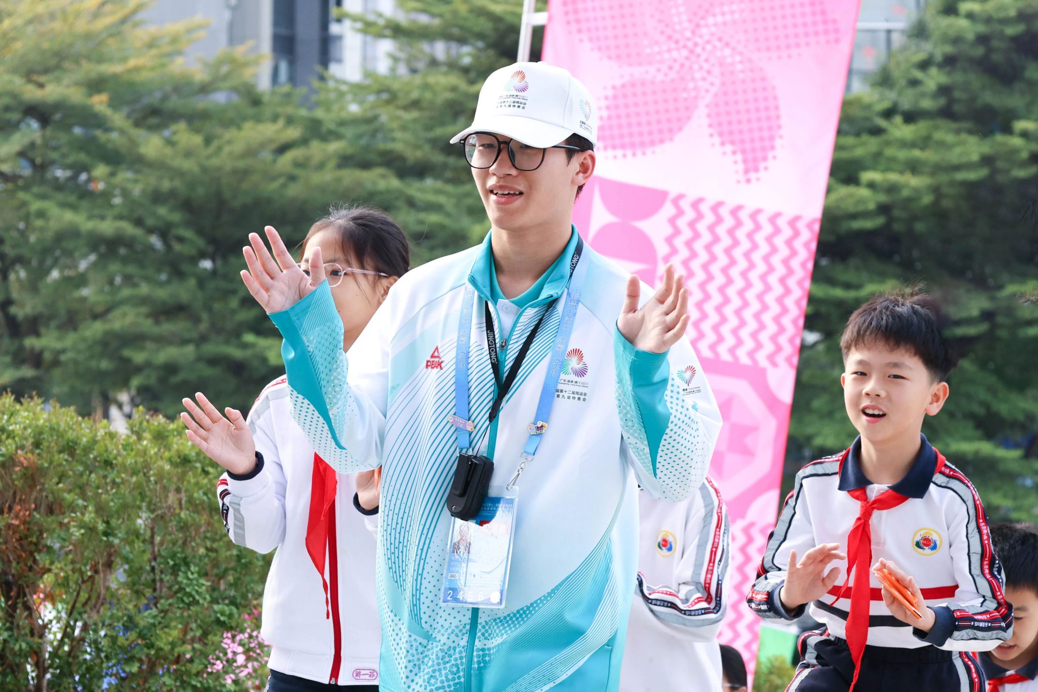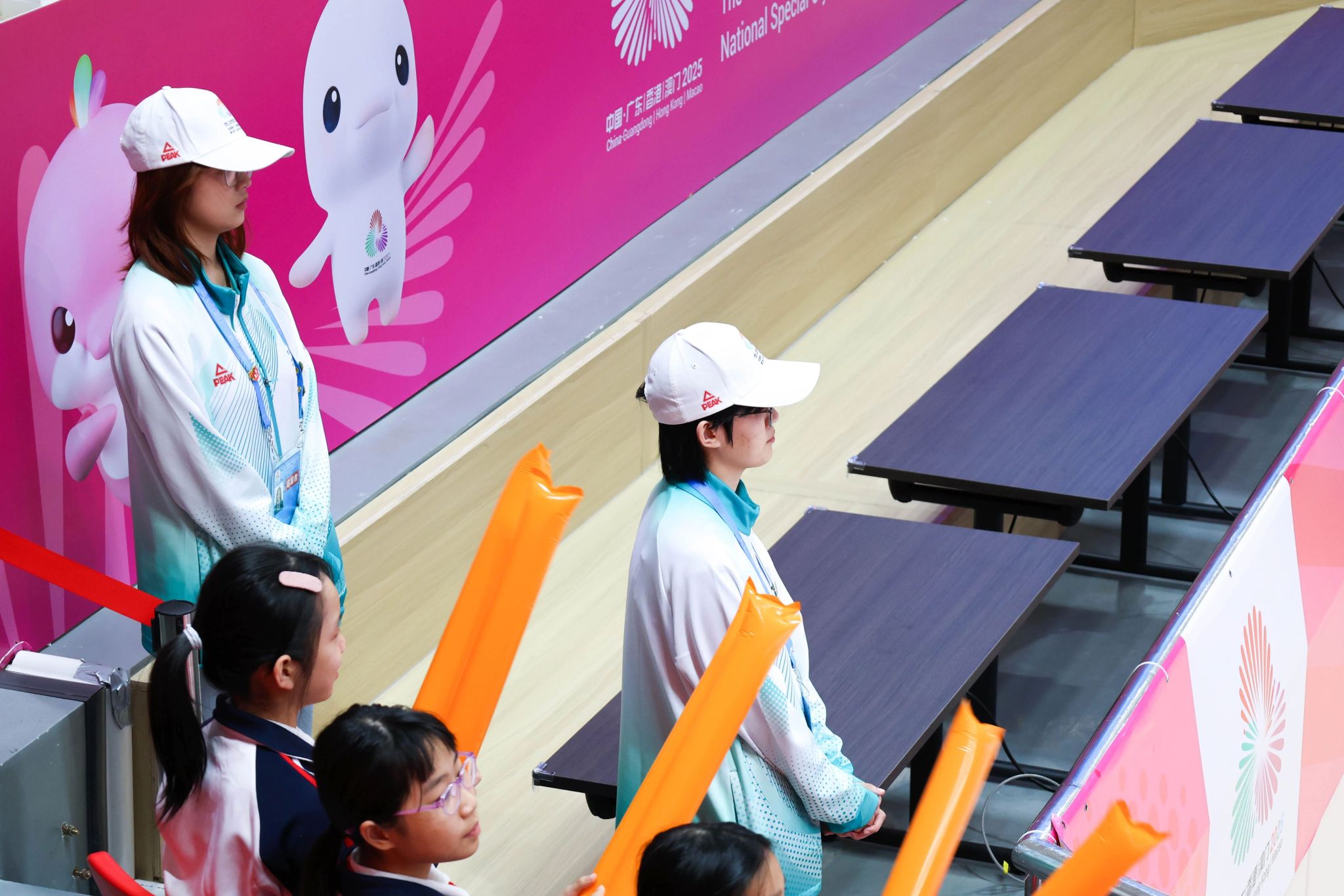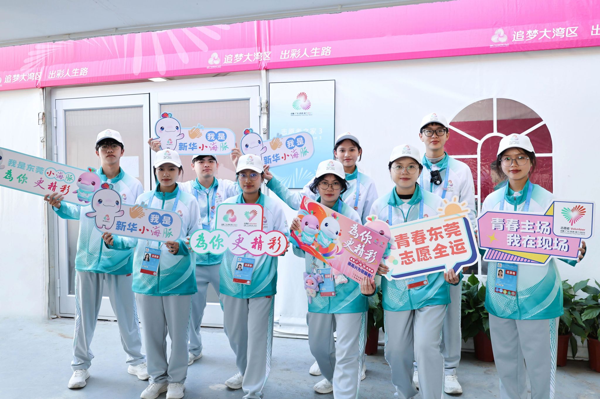 观众服务团队涵盖了坐席移动服务员助理、看台服务运行助理、机动岗志愿者、应急协调助理与特殊人群服务员等五个岗位,共同营造热情、愉悦及便利的观赛环境。从场馆入口、停车场到看台区域,“小海豚”热情引导观众入座;再到对特殊人群的专人服务,主动巡视并回应观众各类需求,及时提供帮助。机动岗志愿者在赛场外的观众入口处做好动线指引,确保包括特殊人群在内的所有观众顺利入场、安全离场。新华“小海豚”向观众传递粤港澳的热情与温暖,更用行动去传递“为你 更精彩”的赛事口号。