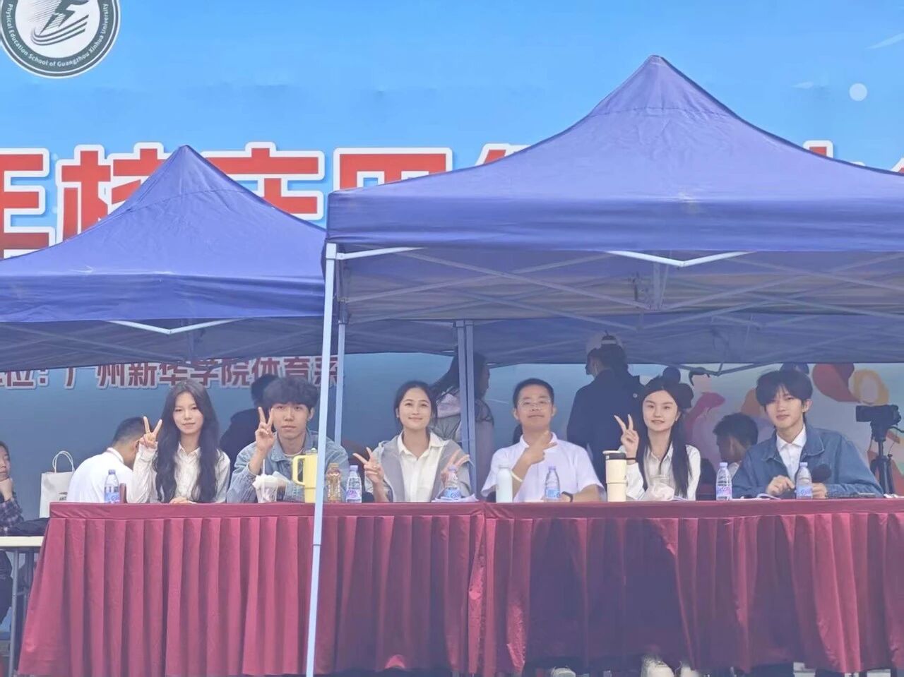 图七:涂海龙(右三)参与2025年运动会播报