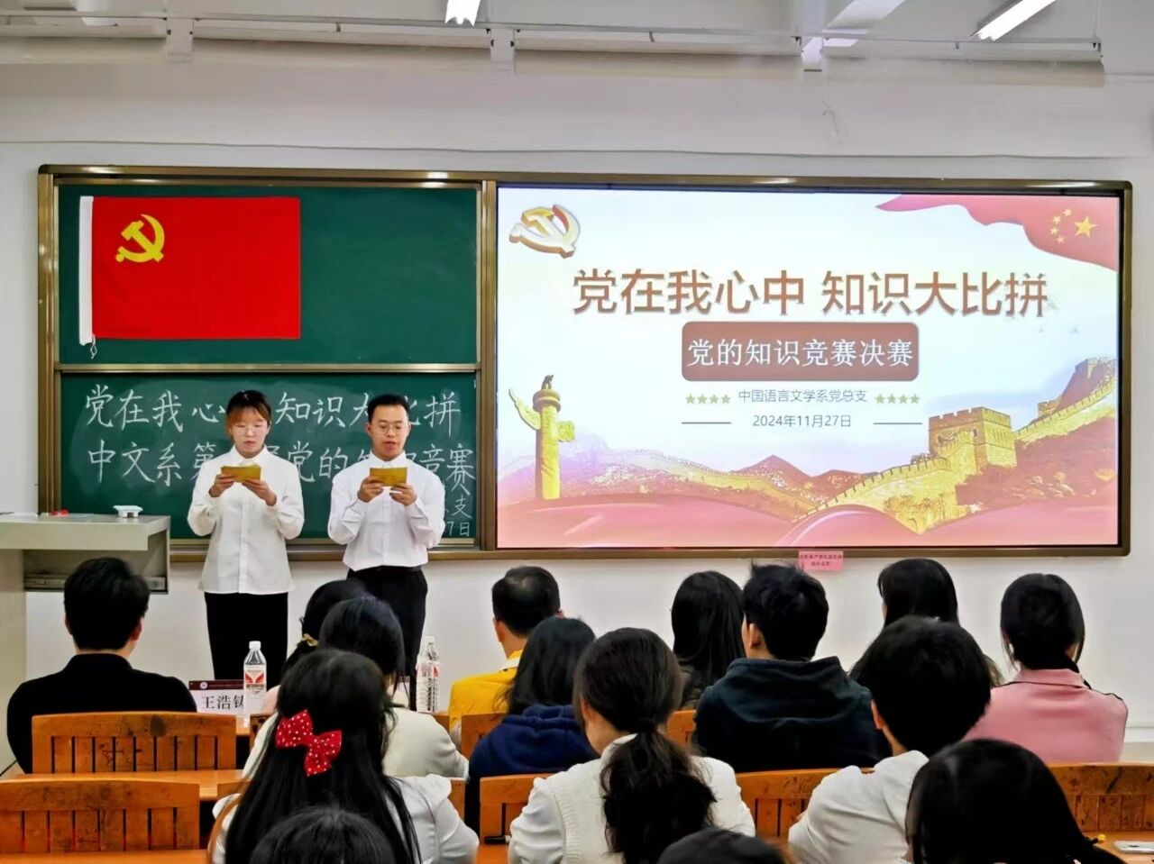 图二:涂海龙(右一)主持党的知识竞赛决赛