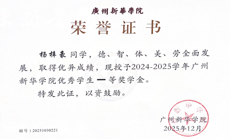 “踏平坎坷成大道,斗罢艰险再出发。”游戏科学CEO冯骥先生的这句箴言,诠释了过程的意义与探索的价值。在广州新华学院的校园里,2024级物流管理专业的杨梓豪同学,正是这样一位以“求索”为青春底色的前行者。他不将自己局限于单一赛道,在学业精进、思想淬炼等多元征程中同步发力,用实际行动绘制了一幅新时代全面发展好青年的画像。今天,就让我们走近这位永不停歇的“求索者”--“全面发展好青年”候选人杨梓豪。