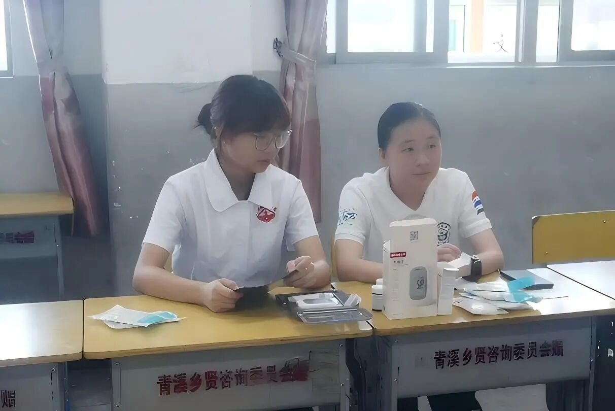 图七:邹媚(右一)参加暑期三下乡现场照