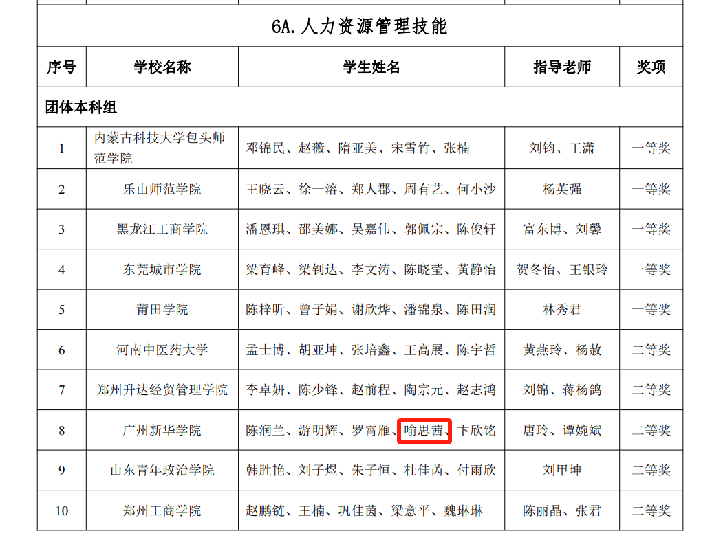 同时,她还积极参与有关人力资源管理专业的各项比赛,在赛事中深耕专业知识、锤炼实操能力,将理论要点与实战场景深度结合,不仅在团队协作中打磨了沟通协调与问题解决能力,更在备赛与竞技的过程中拓宽了专业视野、夯实了专业功底,并成功在海峡两岸暨港澳大学生职业技能(能力)大赛-人力资源技能赛项中,荣获省级二等奖。