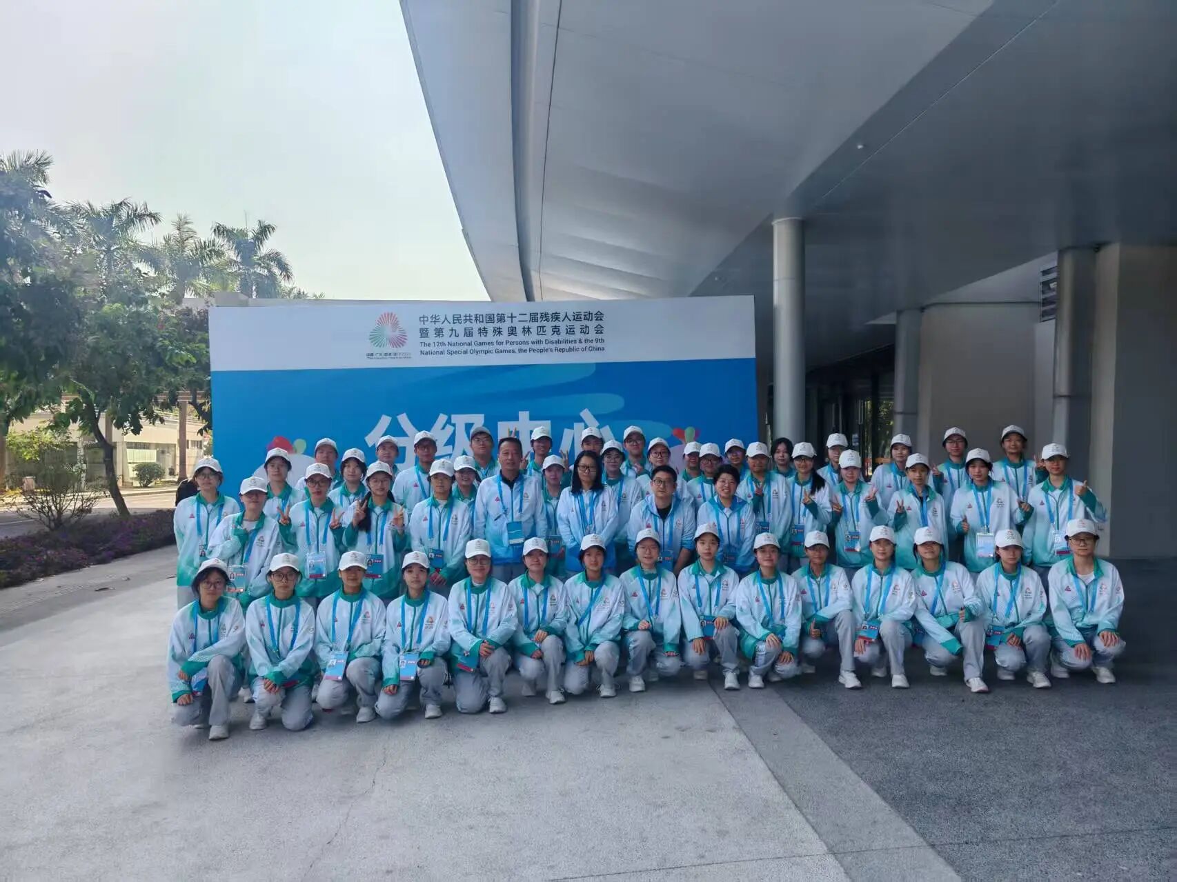图八:潘亚菲(第一排左六)参与全国第十二届残运会分级中心志愿服务现场照