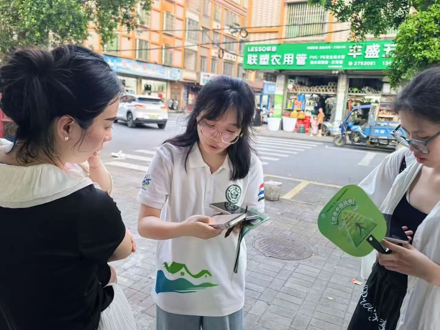 图七:潘亚菲(右二)进行三下乡问卷调查和健康体重宣传
