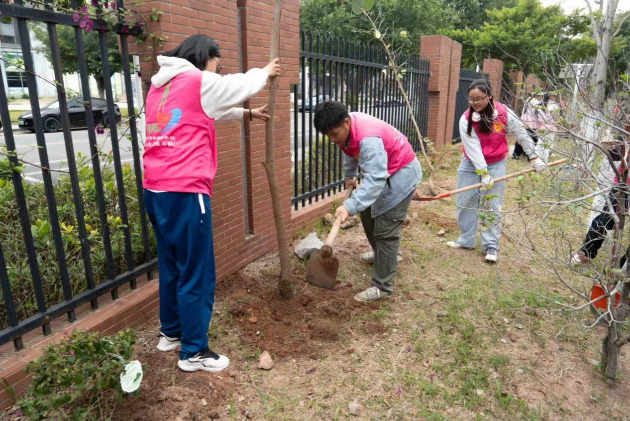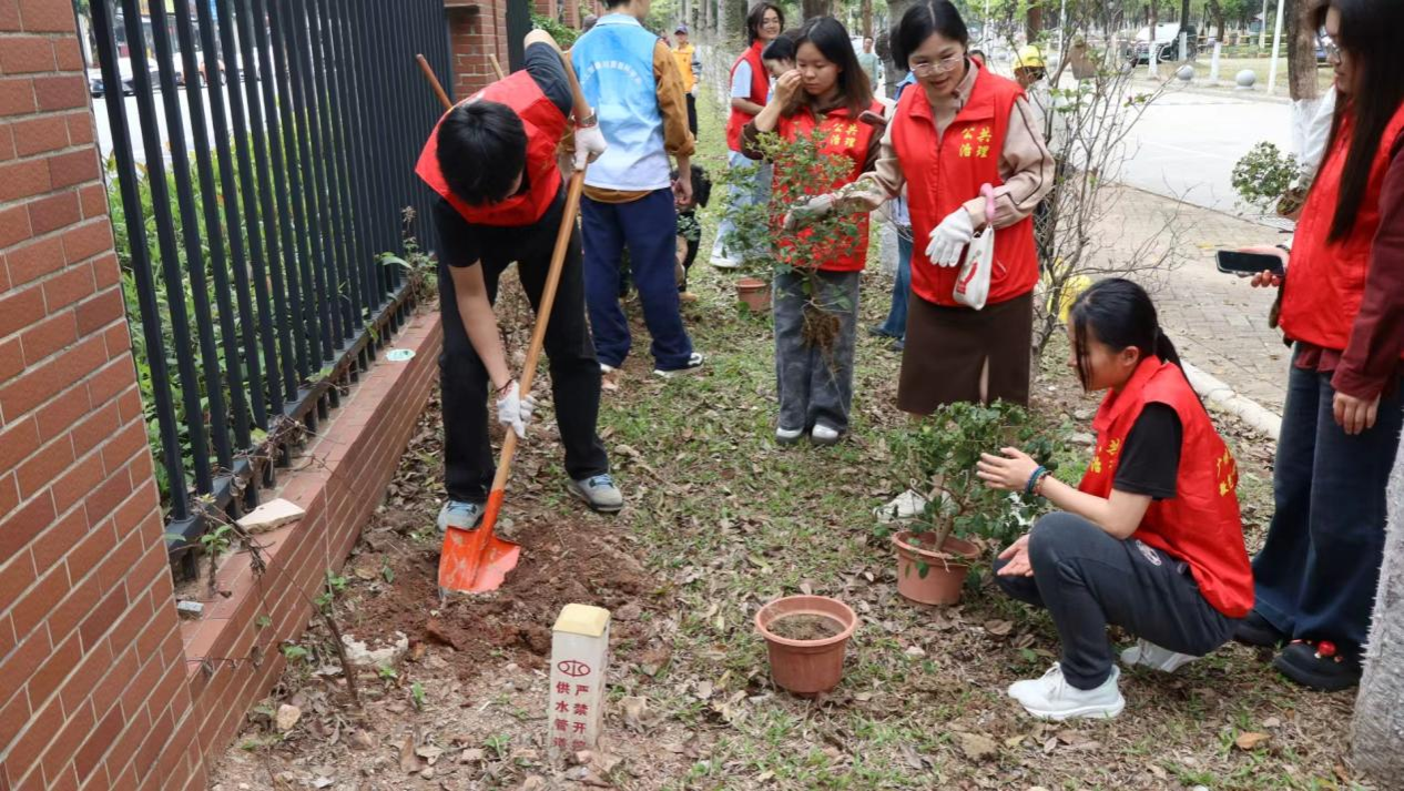 建设“绿美广东”是省委、省政府部署的生态文明建设重要工程,新时代青年既是绿色家园的受益者,更应是生态建设的践行者。本次植树活动不仅是植绿护绿、美化校园的志愿行动,更是学校落实新时代大学生劳动教育、传承雷锋精神的生动体现。