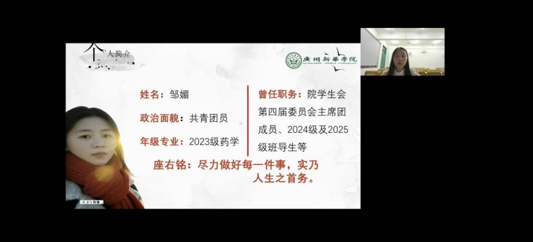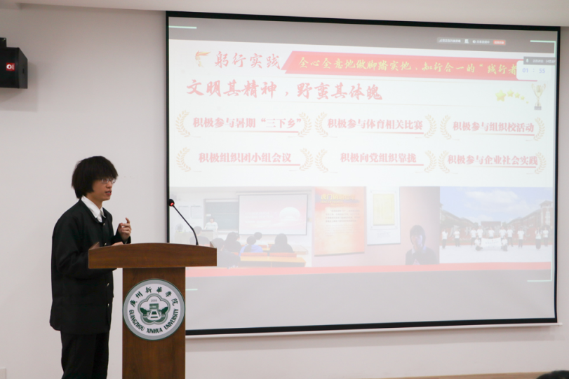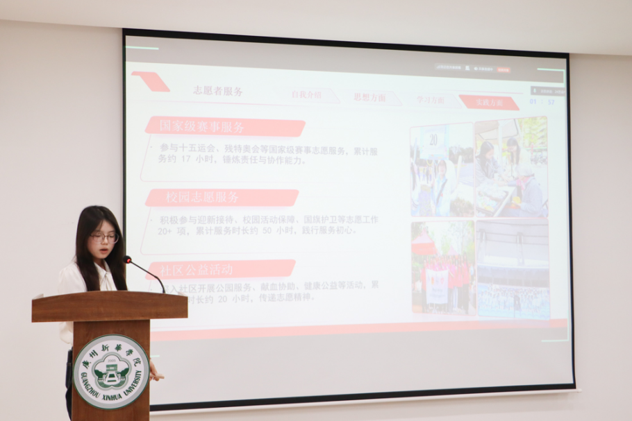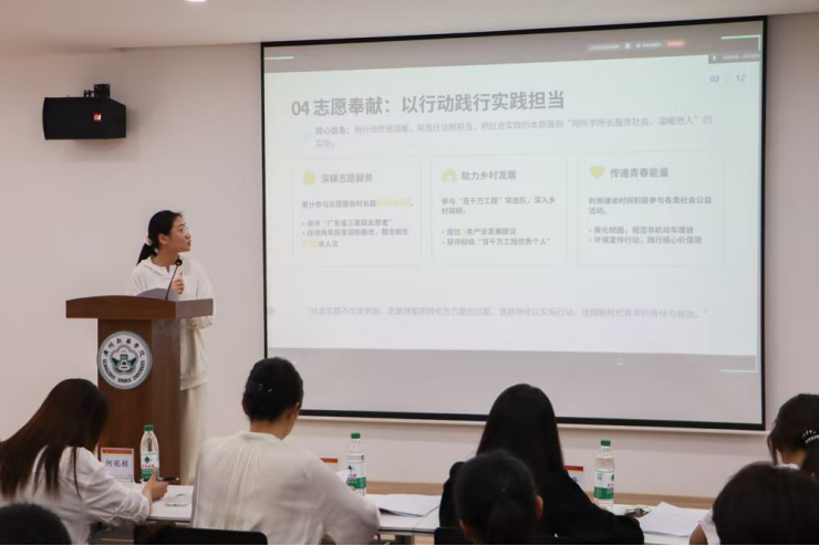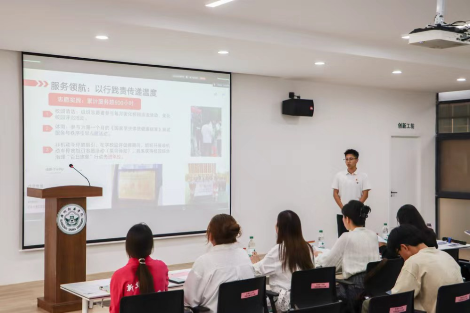 活动第一项议程,由主持人介绍本次复审会评选规则。本次评选活动设置线上、线下两类展示渠道,由校团委组建教师评审团,依据27位候选人的事迹展示情况开展综合评分。评选流程为:候选人进行5分钟PPT演讲展示,随后进入2分钟提问答辩环节,答辩结束后由评委现场打分,最终从27位候选人中择优确定15位晋级终审环节。