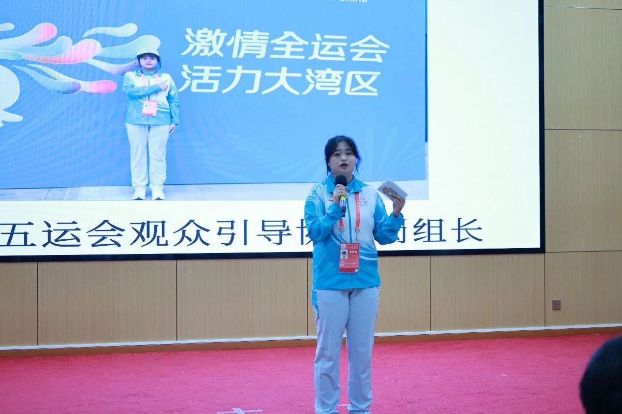 主题分享环节,广州、东莞两校区各6名志愿者代表依次上台分享,志愿者代表们畅谈双赛志愿服务路上的收获与成长,细数服务过程中的日常点滴,讲述十五运会与残特奥会志愿服务里的坚守与尊重,真诚又质朴的分享,让现场观众真切体会到志愿服务背后的默默付出与满满感动。
