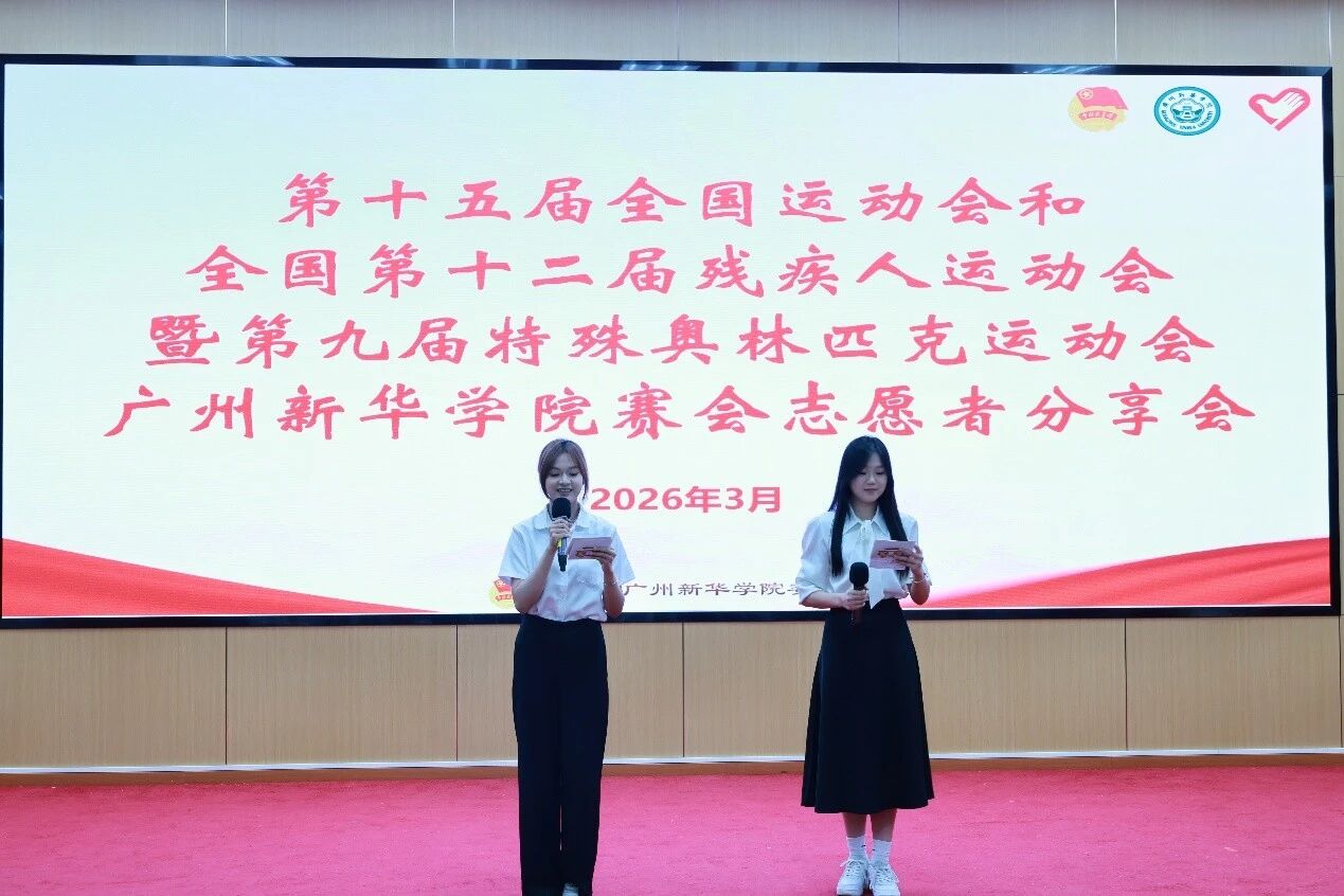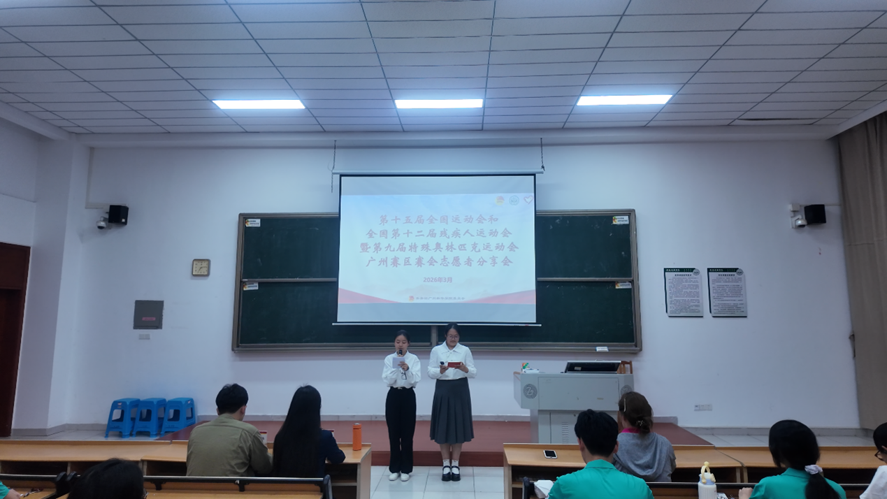 为凝聚志愿力量,传递志愿精神,让更多青年感受十五运会和残特奥会志愿服务的温暖与力量,我校于2026年3月20日、3月27日分别在广州校区、东莞校区开展“志愿星光,拾光纪事”十五运会和残特奥会志愿者分享会。党委学生工作部副部长、校团委副书记黄琳老师,校青指指导老师、校艺术团指导老师邹经纬老师,资源与城乡规划学院的夏海老师分别莅临广州、东莞两校区分享会现场。两校区各邀请6名十五运会和残特奥会志愿者作为嘉宾进行分享,与全校青年学子共话志愿故事,同悟青春担当。